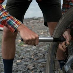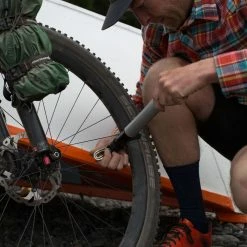 Jamming along some choice singletrack and suddenly presented with hissing tire and feeling rim touching trail is certainly a buzz kill. Get your groove back and ride out instead of walking with Blackburn’s Mammoth 2Stage AnyValve Mini-Pump. Its TwistGrip head locks to Presta, Schrader, and Dunlop valves for a sure and leak free connection and is rebuildable. This mini pump is specifically designed to push more air per stroke making it perfect for higher volume mountain tires, but its switchable high-volume and high-pressure modes allow for faster inflation with less effort and its 120psi max pressure makes it ideal for road use too. Includes bottle cage mount so it’s easy to take with.