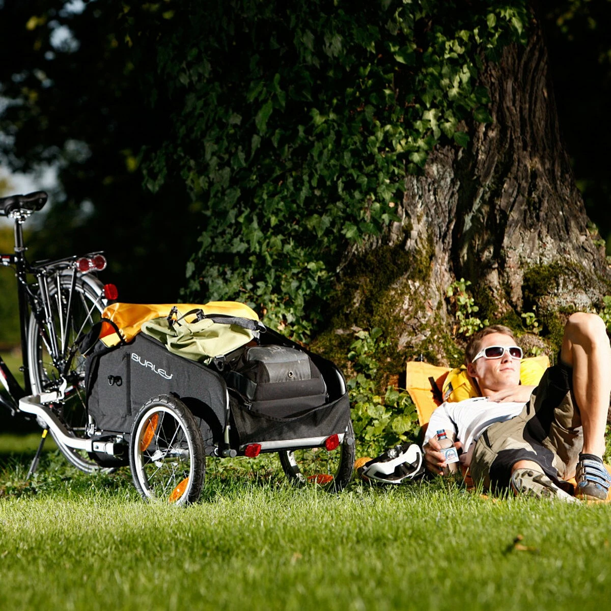 Joking aside, the Nomad’s really pretty sweet. Whether you’re going on a weekend camping trip, or even something longer, it has enough space for all your gear, and a sturdy structure that’ll keep rolling for thousands of miles. The 16in alloy wheels are strong but lightweight, and the good folks at Burley even hooked the trailer up with reflectors and a safety flag, because nothing puts the brakes on a camping trip like a night in the hospital.