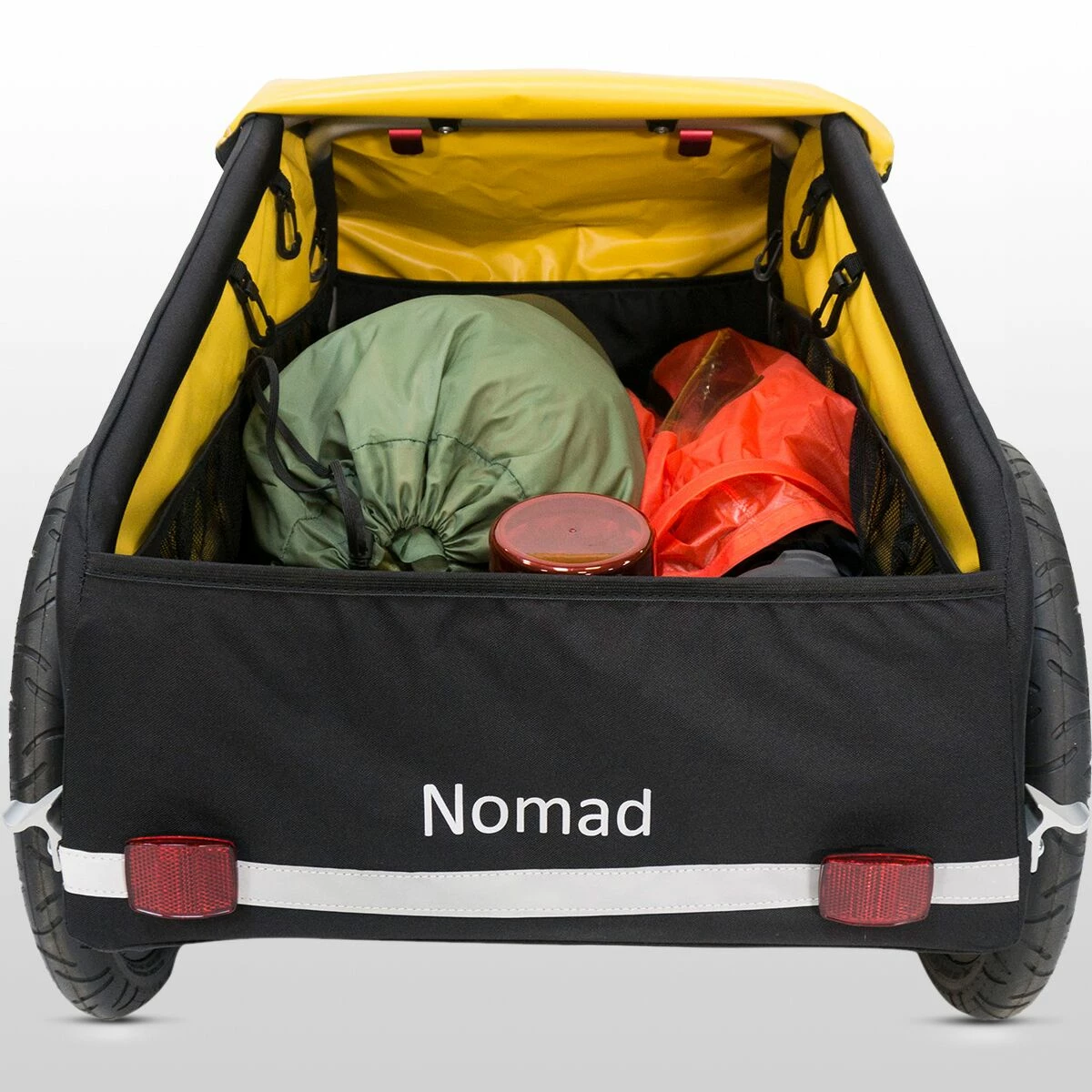 With its 100lb capacity, the Burley Nomad Bike Trailer can carry your whole collection of handmade soap to the county fair, move all your tie-dyed vinyl across town to your new communal living space, or haul stacks of corncob flutes down to the farmer’s market without making a fuss. The secret’s in the internal aluminum frame, which gives the Burley the structure that your life is lacking, and the forged hitch that attaches securely to your bike without weighing down your spirit or legs, man. A collapsible internal divider makes sure your traveling crystal collection doesn’t get contaminated by the portable composter that you just traded for, and three mesh pockets, six tie-downs, and a weatherproof cover make sure your sunny vibes don’t get soggy or blown away.