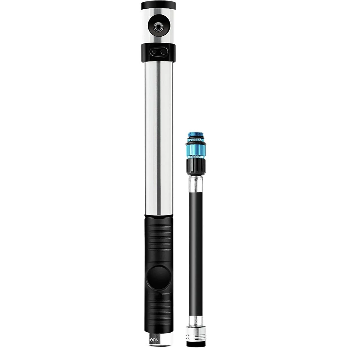 This compact hand pump is available in either high-pressure or high-volume versions, with the high-pressure version providing up to 120 psi for road bike tires and the high-volume version offering greater flow to inflate mountain bike tires (max inflation is 110 psi, which is something you’ll never approach in a higher volume tire).