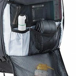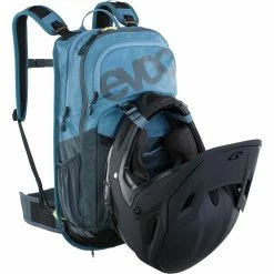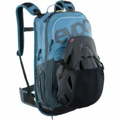 To keep you comfortable under the load of all of your gear, Evoc constructs the Stage with a Brace Link back, which adapts to your individual shoulder width, while a wide, padded waistband helps support the weight. Airflow contact system adds a boost of ventilation to your back , with channels for cool air to enter, and sweat to escape. And on the flip side, along the back of the pack you’ll find a helmet carry, compatible with both half-dome and full-face helmets, and a gear carry for carrying along bulky knee pads on the climb. On the inside you’ll find a large hydration reservoir compartment for adding a reservoir to the pack. Last, but certainly not least, you’ll find ample external pockets to keep your wallet, keys, phone, and sunglasses secure and scratch free.