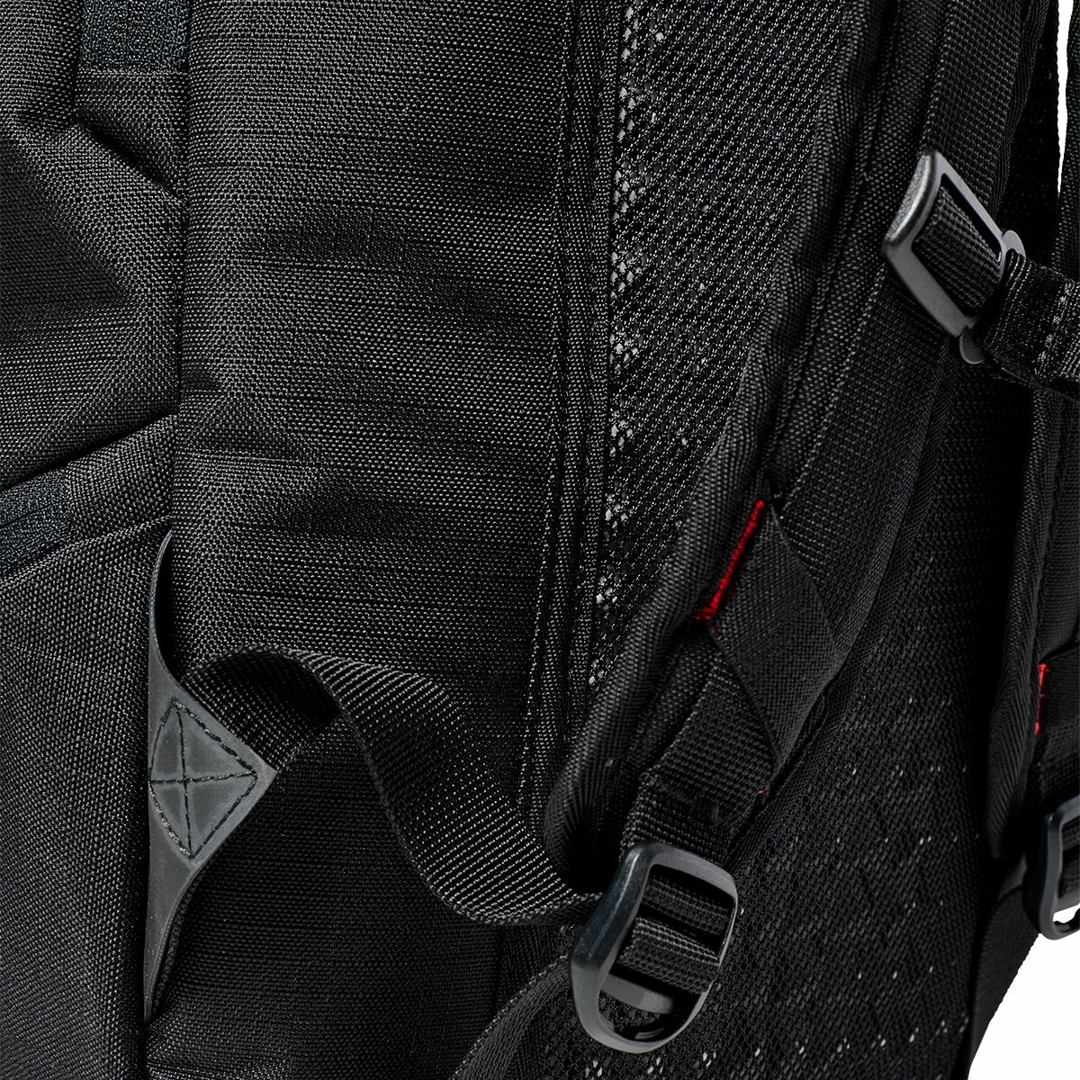 - Pockets: [exterior] bottle sleeves, [interior] padded laptop sleeve, 2 zippered mesh