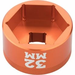 Whether you’re performing an air spring service, or adding volume spacers to your Fox fork, the Fork Topcap Socket is a necessary tool for loosening the top cap in order to access the air spring. In recent years, it was a struggle to find the right socket for the job. Top caps are a fraction of the height of normal nuts, and most sockets are chamfered, which increases the risk of rounding out your top cap. This socket is chamfer-less, sitting flush against your top cap to maximize the contact points and provide a secure fit, reducing the chance of damaging your top cap. It comes in a durable orange-anodized finish, and fits 3/8in ratchet drivers. The 26mm socket fits 32-series forks and some 34’s, the 28mm fits most 34-series forks, and the 32mm size is for 36, 38, and 40-series forks, but it’s never a bad idea to measure your top cap diameter beforehand, just to be sure.