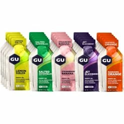The 100 calories of complex carbohydrates found in all 24 pouches of the Energy Gel 24 Pack are only part of the reason why Gu is such a ubiquitous sight in the peloton and on recreational rides. Gu’s Energy Gel also packs amino acids, antioxidants, and muscle buffers to help begin the recovery process even while you’re refueling mid-event. A splash of caffeine helps kick your engine into fat-burning mode, and the packets are easy to tear and eat โ no chewing, no two-handed fumbling, and no risk of choking on solid food during hard efforts at an unrelenting pace.