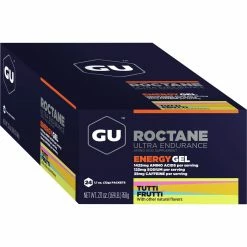 The Roctane Ultra Endurance Energy Gel improves upon GUโs original recipe incorporating advanced ingredients to boost your performance. The Roctane features a superior mix of complex and simple carbs for quick and consistent energy, includes electrolytes to keep you replenished, and contains caffeine to help you power through a long day in the saddle. The Roctaneโs formula offers a long list of amino acids that slow lactic acid production and fight fatigue. GUโs formula also includes OKG, an amino acid that limits the bodyโs tendency to break down muscle protein tissue, which helps you recover quicker.