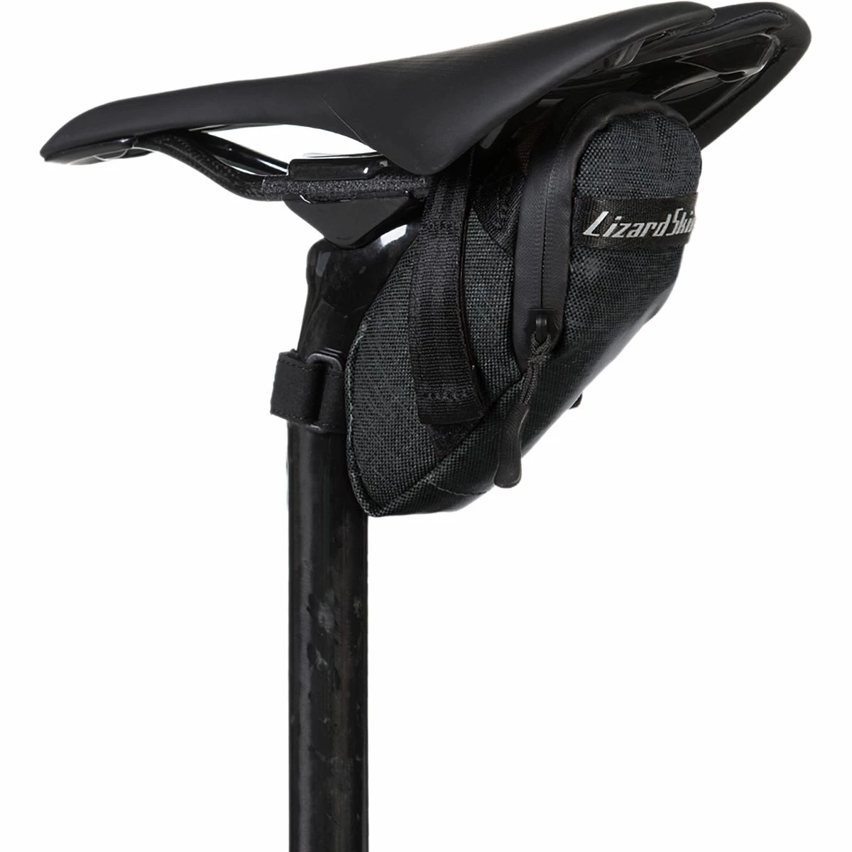 Store riding essentials and tools in streamlined, low-profile style with the Lizard Skins Micro Cache Saddle Bag. Angled straps attach to your seat rails without the bag sloshing around at high speeds or being overly bulky. This compact saddle bag carries a spare tube, small snacks, and other essentials when you’re riding in remote locations. Water-resistant fabric keeps internal items dry and protected from passing showers and storms, and the Amara synthetic leather prevents premature abrasion from ruining this bag.