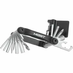 Most crafts it from chrome-vanadium steel for robust durability, complete with a neoprene sleeve for handy storage in your jersey pocket or saddle bag. This mini-tool has seven hex wrenches, four spoke wrenches, a chain tool for 9/10/11-speed drivetrains, three Torx drivers, two screwdrivers, an 8/10-millimeter wrench, pads spreader, and bottler opener. Check the tech specs for an in-depth list of every wrench, driver, and screwdriver contained in this mini-tool.