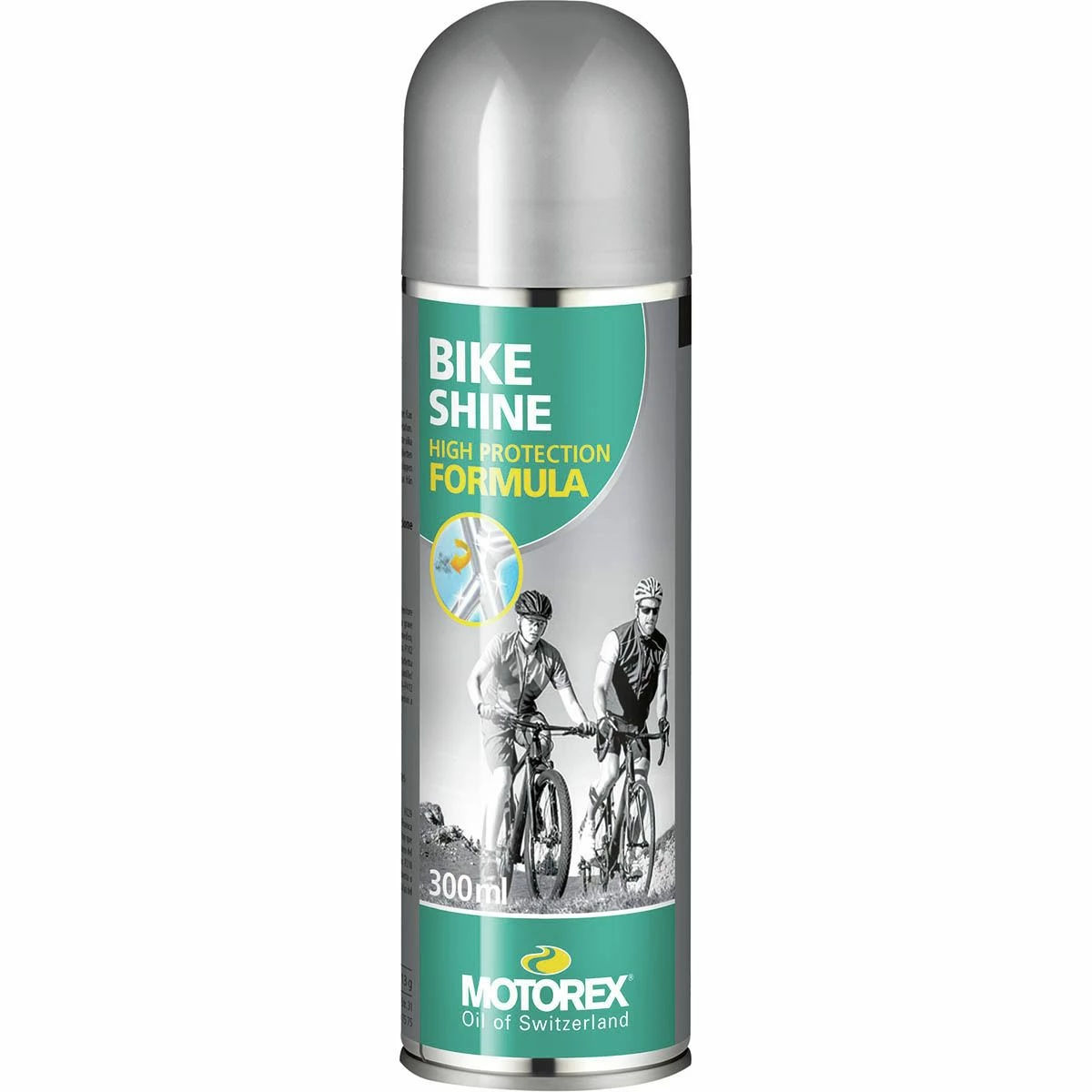 Motorex Bike Shine comes in a 500ml aerosol bottle — enough for about 20 applications — and is safe for carbon fiber frames and components.