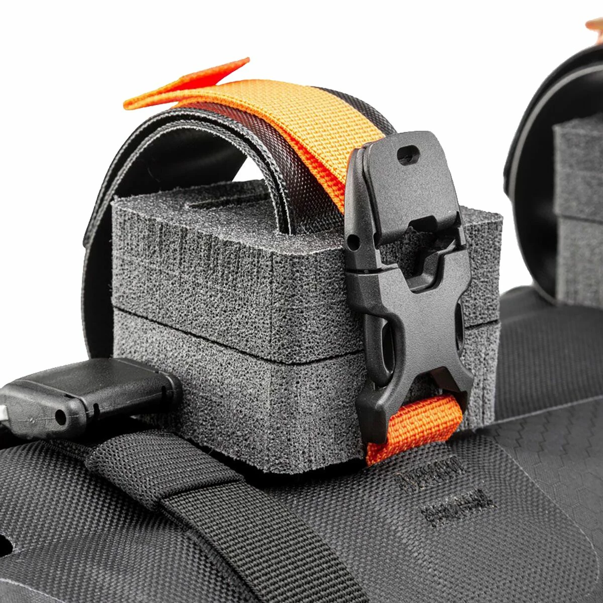 - Straps with four hooks offer compression and attachment points for an Ortlieb accessory-pack
