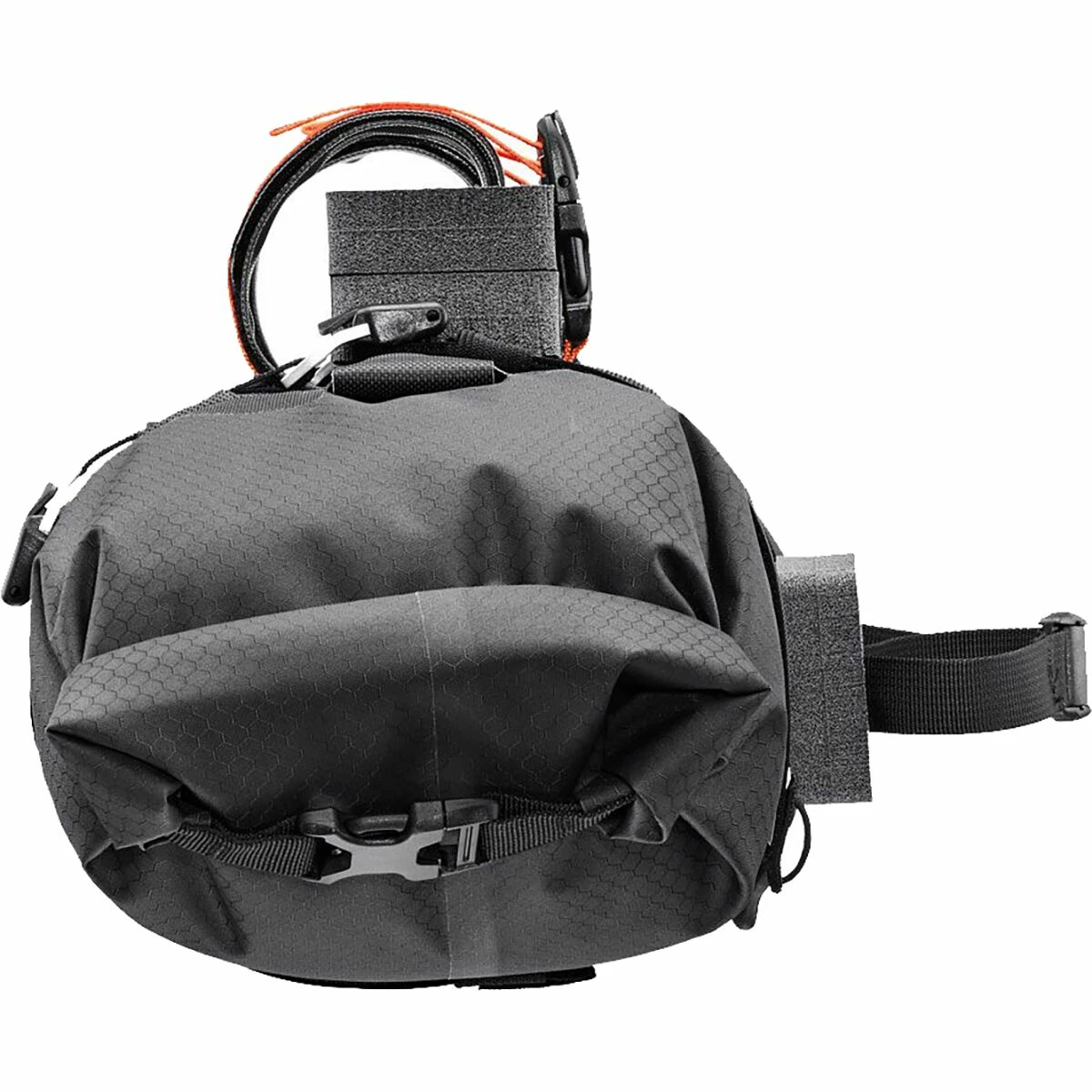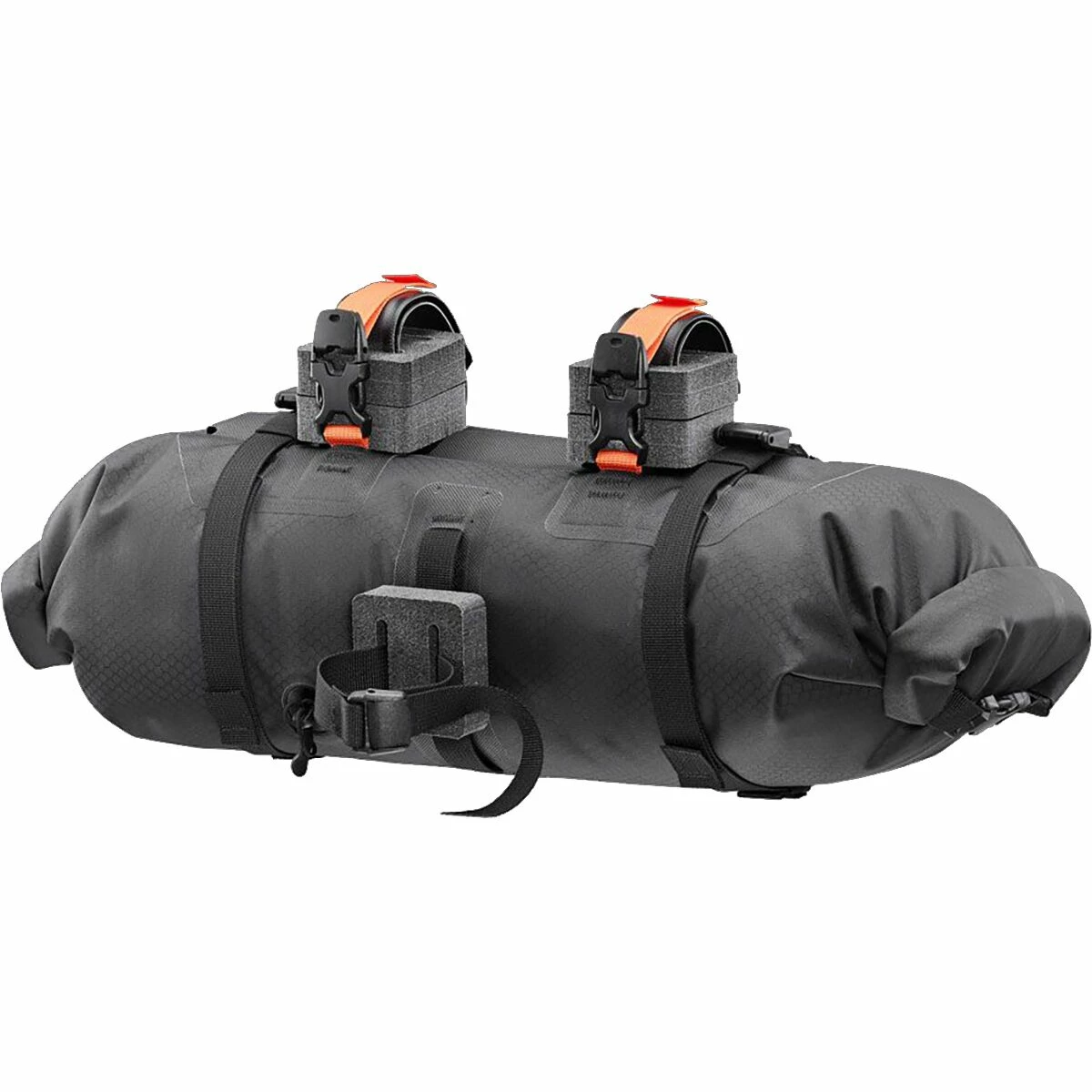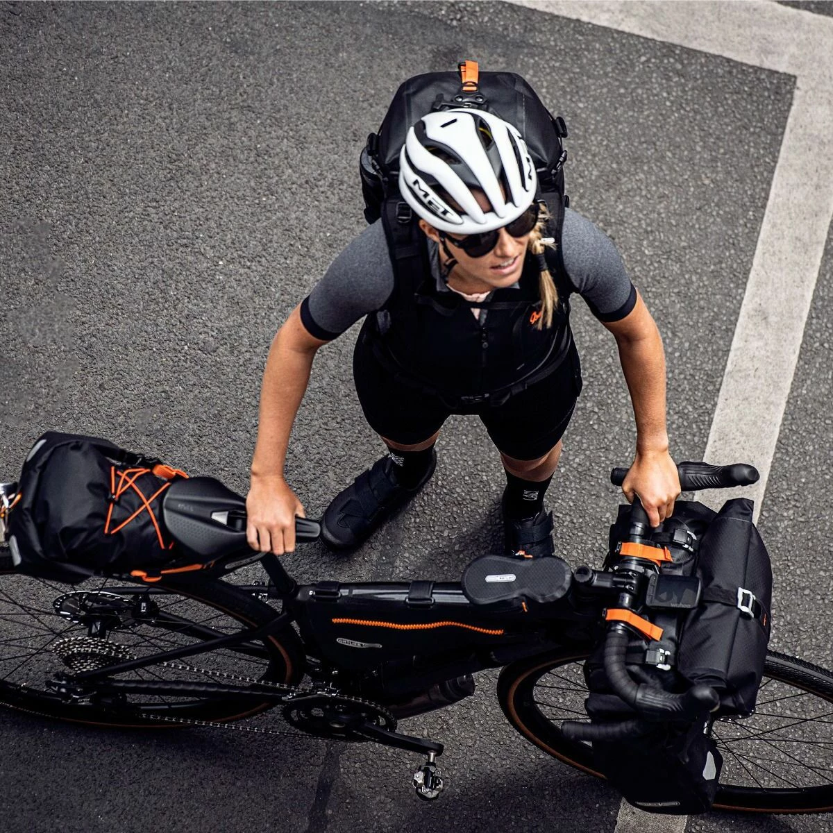 The Ortlieb Handlebar Pack quickly stands out as one of the best bike-packing bags we’ve ever used. About half the size of a normal backpack and capable of strapping to our handlebars, this pack has enough room for our bivy, some snacks, and maybe a book or two. It’s perfect for our camping essentials and the pack fixes securely onto our road or mountain-bike handlebar with a featured ‘roll-up’ closure to keep everything dry.