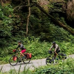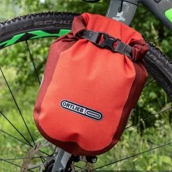 Secure storage is an absolute necessity during bike packing, so we fit the Ortlieb Plus Fork-Rack for our adventurous endeavors. This little rack fixes to our fork zits, providing an extra 4L of ultra-secure storage. With a flick of a switch, the pack dislodges from the fork and easily becomes accessible. The bag features a roll-top closure, helping keep elements out of our essential fork-stored goodies.