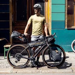 Ortlieb’s Topetube Frame Pack is for riders who want to utilize the storage space within their frame’s main triangle without sacrificing our water bottle placements. It works for full-suspension mountain bikes with limited triangle space, but also for road and gravel bikes that have ample real estate under their top tube. A 4-liter payload means we can stuff in everything from our tent to our water bladders, and its placement ensures a lower center of gravity for evenly dispersed weight while we’re riding.