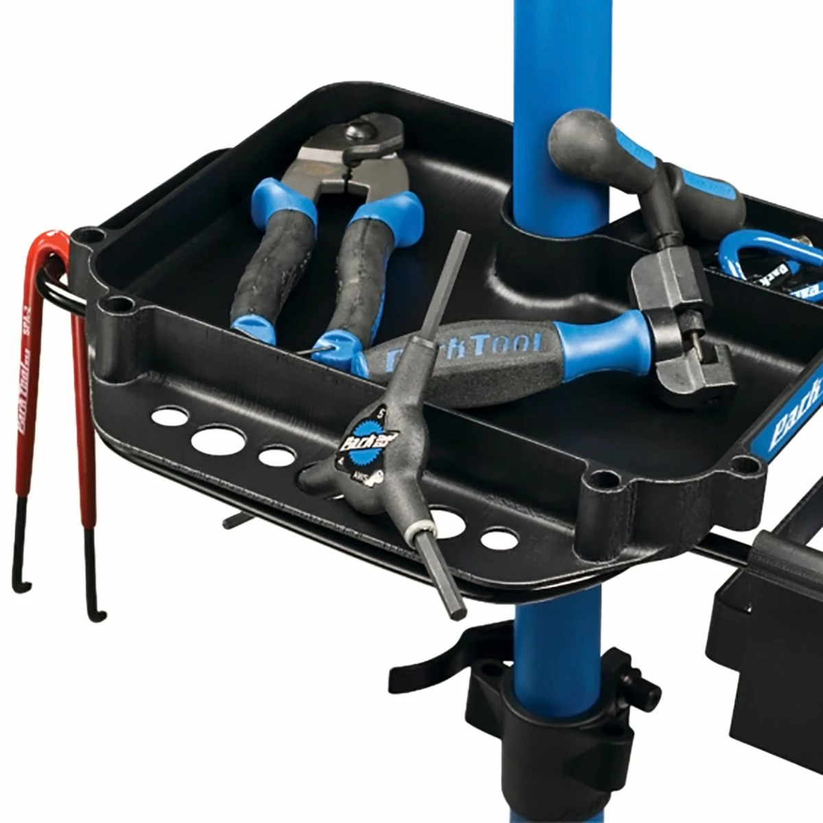Keep tools, lubes, and spare parts close at hand with the Tool Repair Stand Tray. Installs directly and easily to the receiver pod found on the PRS-25, PRS-15, PCS-10, and PCS-11 Repair Stands.