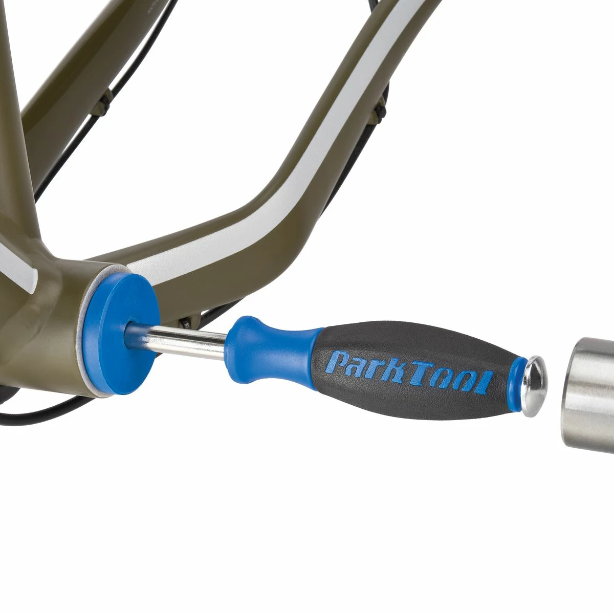 The BBT-30.4 Bottom Bracket Bearing Tool Set is specifically built to install and remove the bearings used in BB30, PressFit 30, 386EVO, BBright, and PF121 bottom bracket systems. The BBT-30.4 comes with adapters that, when used in conjunction with a headset cup press, quickly and precisely presses BB30 bearings or PF30 cups into the bottom bracket shell. The included BB30 bearing remover works through the shell and with a hammer, easily punches out the bearings. Its length is long enough to reach bearings even on wider fat bike shells.