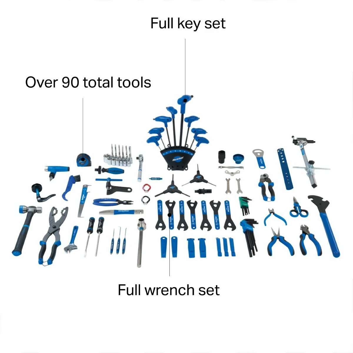 For the mechanic or at-home DYI aficionado, the Park Tool PK-5 Professional Tool Kit fills the pegboard with essential and more specific tools for nearly every bike maintenance situation. From the basics of scissors and a tape measure to a fine-tuned cotter gauge, the tool kit adds over 90 tools to your set, only leaving out cleaning supplies and a few lesser-used bits to complete the professional’s workbench.