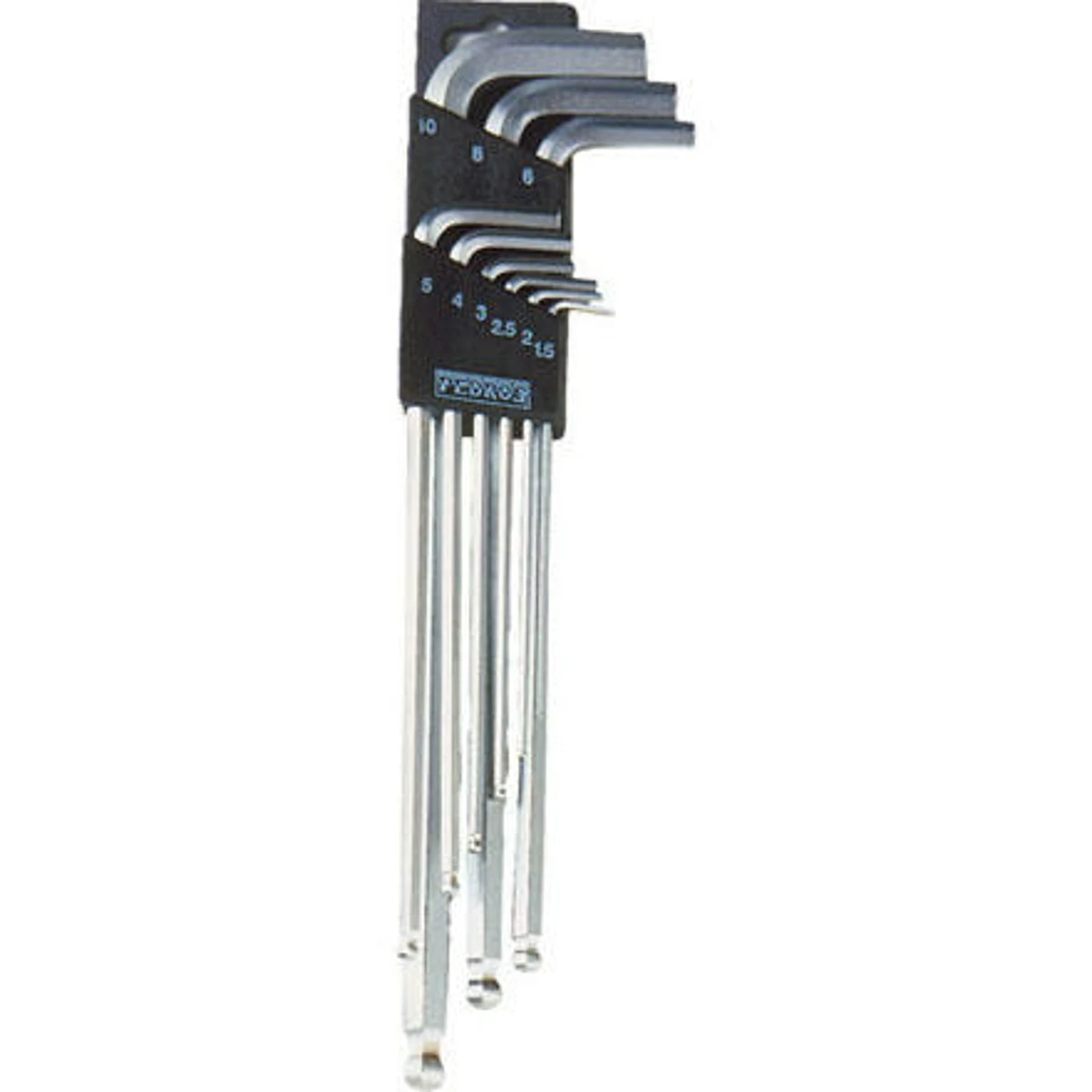 Tired of searching the bottom of your tool box for the right hex wrench? The Pedros Hex L Wrench Set features a tabs-keeping plastic holder, and the long wrench lengths provide great leverage. Pedros made the Hex L Wrench Set from heat-treated steel for bombproof durability and dependability. This bike wrench set includes: 1.5, 2, 3, 4, 5, 6, 8, and 10mm hex wrenches.