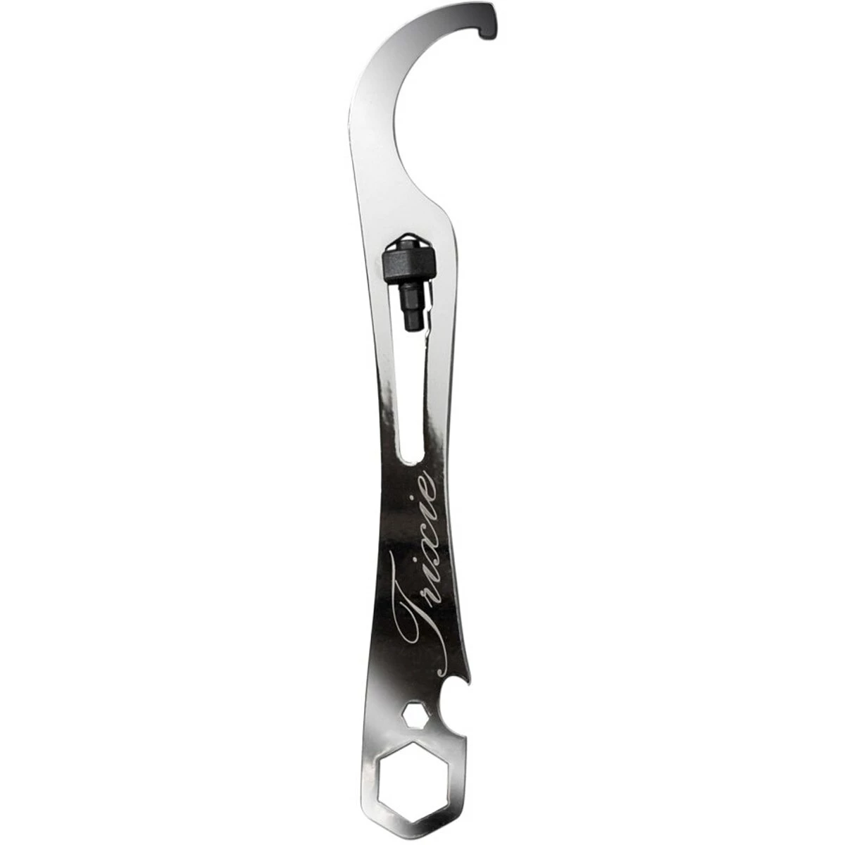 The Trixie Chrome attaches to frame braze-ons with wing nuts for quick and easy removal and installation. And, at 7.4 inches of length with an ergonomic shape, the Trixie provides excellent leverage for loosening stubborn cogs or axle nuts.