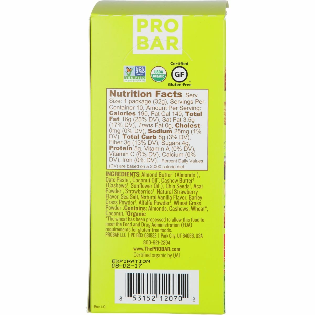 - Allergens: almonds, coconut, cashews, wheat
