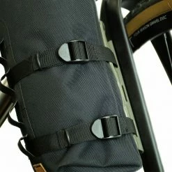 We’re always excited about new and more efficient ways to carry our gear when we’re bikepacking, commuting, or just riding our favorite trails, and the Fork Bag offers an updated solution. It’s totally waterproof and features a roll-top design that wards off mud, water, and debris. Four sturdy attachment loops keep it securely bound to most fork cages and a hard-wearing Hypalon base offers stability and grips to the fork cage.