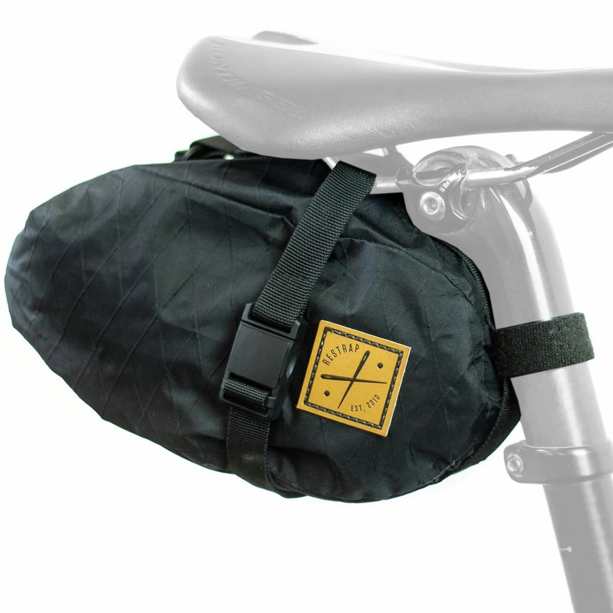 Part of Restrap’s #carryeverything range, the rackless Saddle Pack connects securely to your seat post—without mounts or screws—for bike packing, touring, or commuting. This impressively lightweight saddle pack is handmade in the UK from durable VX21, along with a nylon lining and with taped seams, and boasts a roll-top closure to provide tough protection against the elements. Four liters of spacious storage bring along tools, food, gloves, or an extra layer, while its patented magnetic fittings and unique magnetic compression strap mean that it’s easy to fit. Not to mention, the Restrap Saddle Pack fits any bike to make it ideal for road, gravel, or mountain bikes.