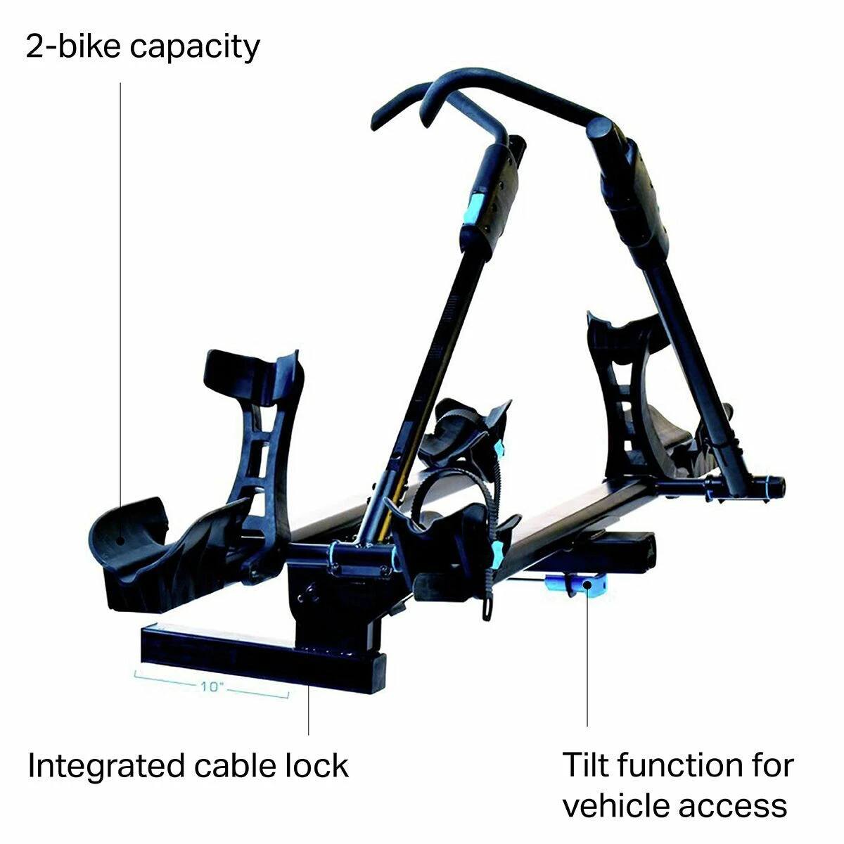 - Sturdy two-bike carrier available in 1.25in or 2in hitch