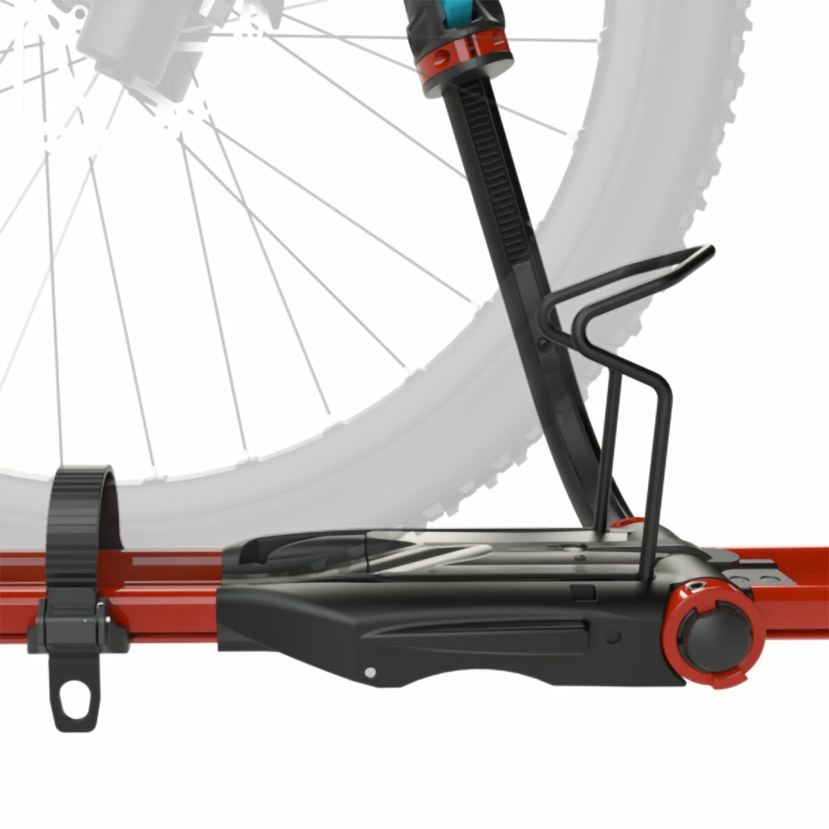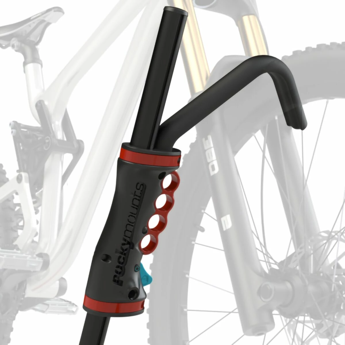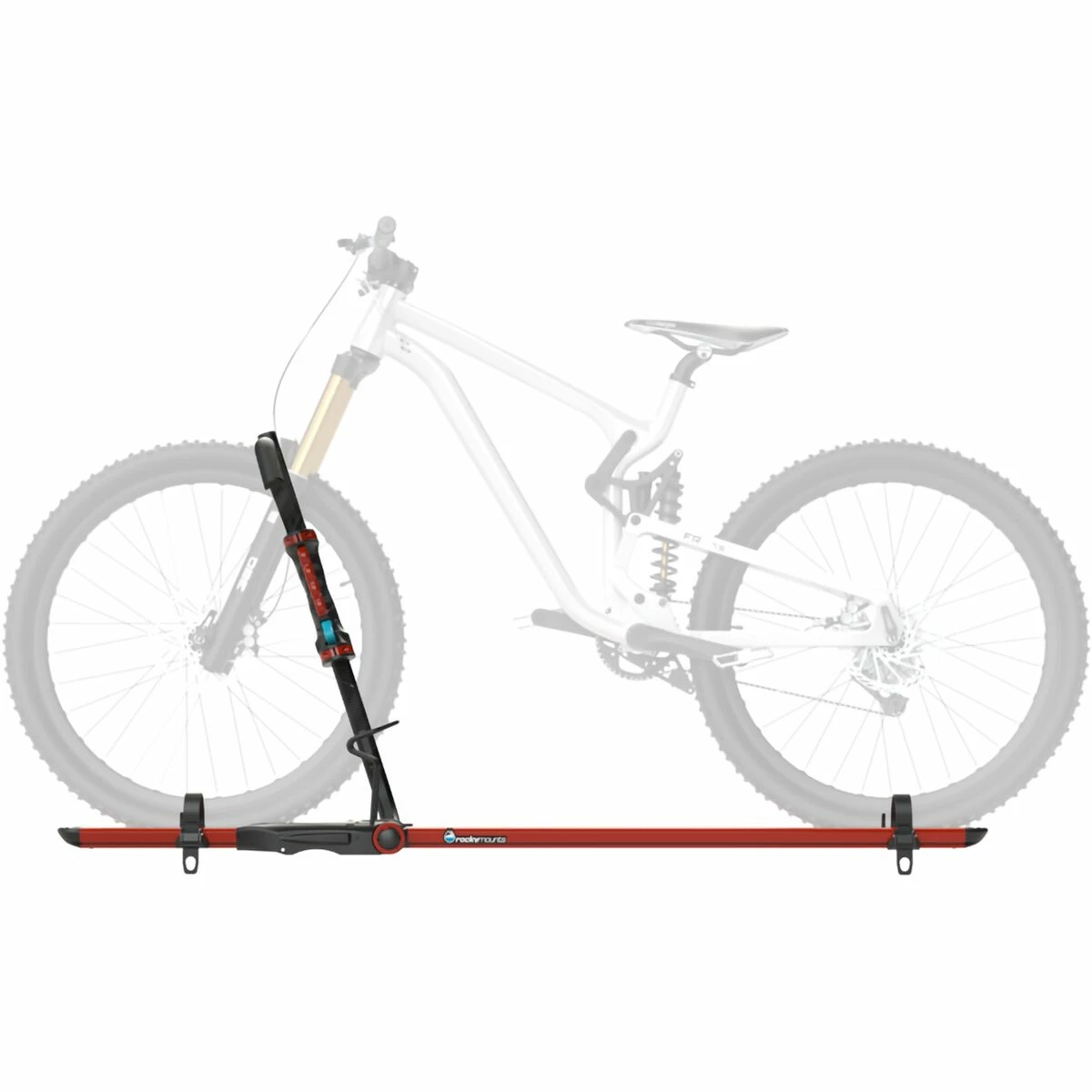 Throw your bike on the rack, lock it down, and get on the road with the RockyMounts BrassKnuckles Upright Mount. No more removing wheels, fiddling with thru-axle adapters, or worrying about excess stress on your precious bicycle frame. The Upright Mount features ergonomic BrassKnuckles that easily adjust to lock the bar over your front wheel and keep your bike securely in place without ever touching the frame. The Upright Mount can also be folded down when not in use to get better gas mileage.