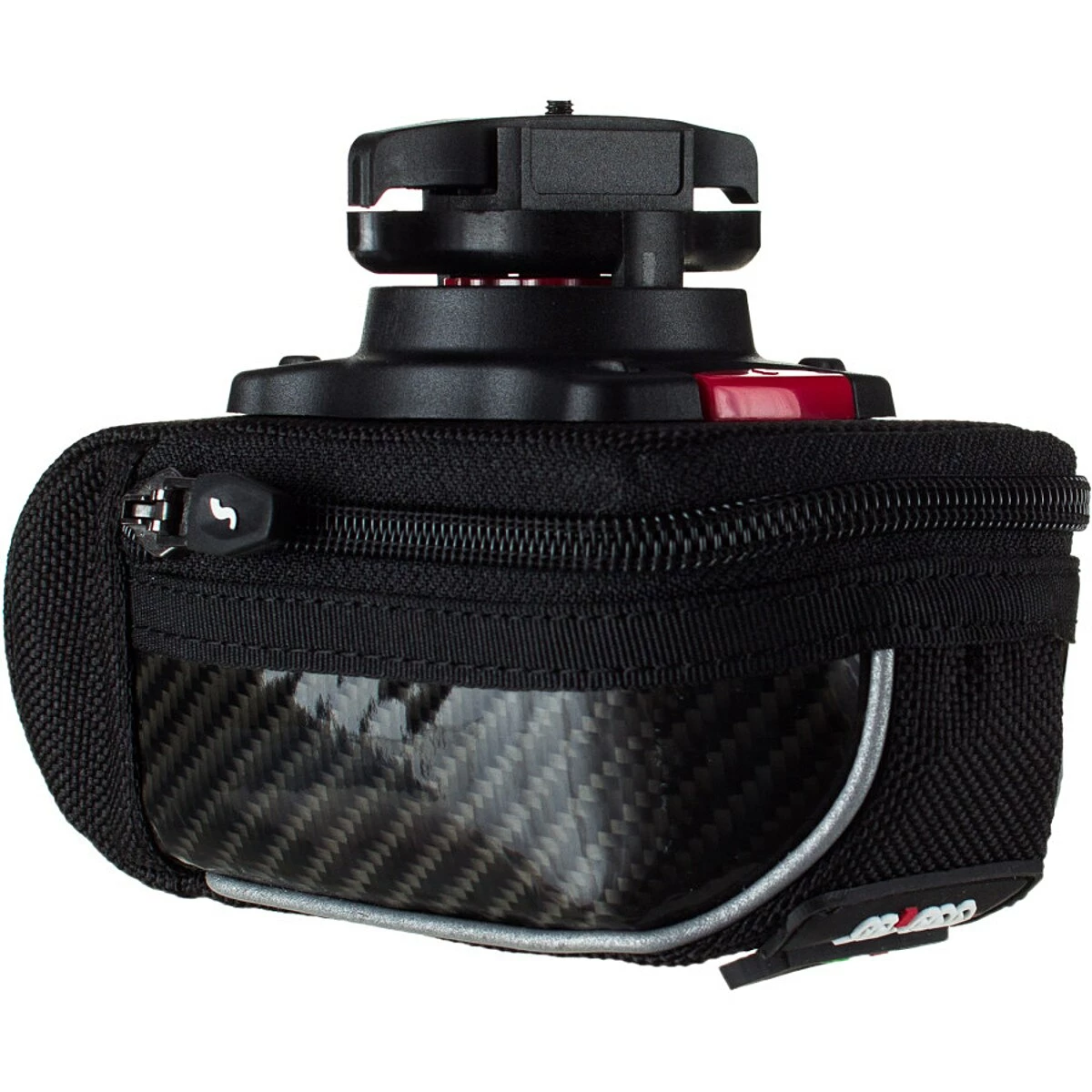 At 430 cubic inches, the Compact 430 sits towards the middle of SciCon’s saddle bag lineup, with enough room for two tubes, patch kit, CO2 cartridge, inflator, and multitool. No tire levers? Well, SciCon actually built special sleeves for them to increase packing efficiency, and thoughtfully included two of their own levers. The bag itself is made from a shape-holding combination of Cordura and carbon fiber, has a giant maw of an opening, and sports an internal hook-and-loop strap to keep small loads from bouncing around. Reflective details wrap around the bag, and SciCon’s unique Roller 2.1 mounting system uses a plastic cleat to attach securely to saddle rails instead of seatposts, so the bag won’t bounce around or work itself loose during a bumpy ride.