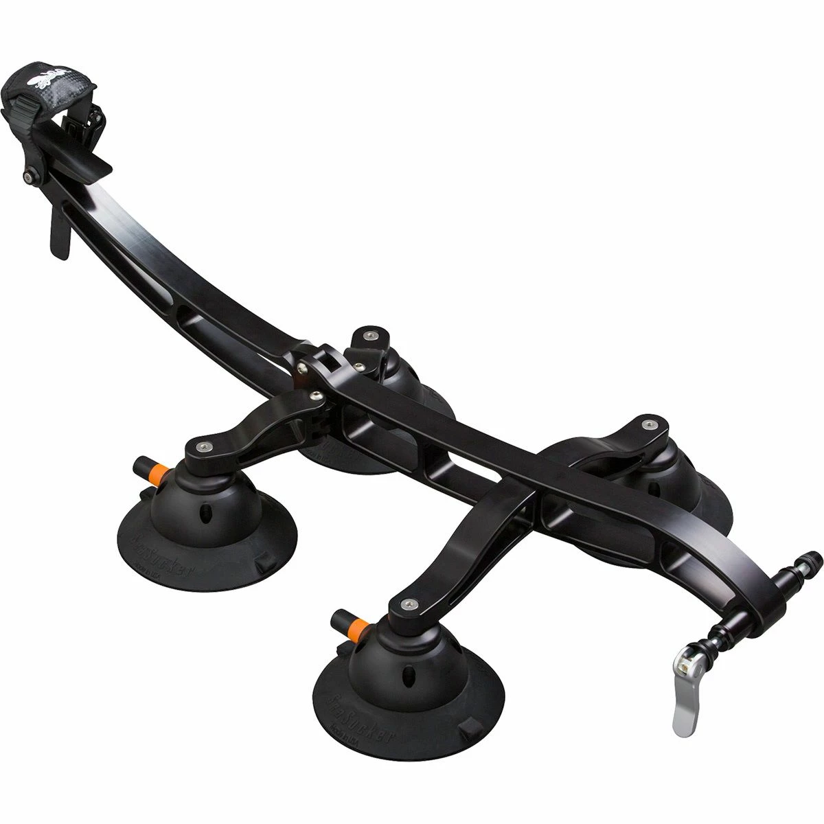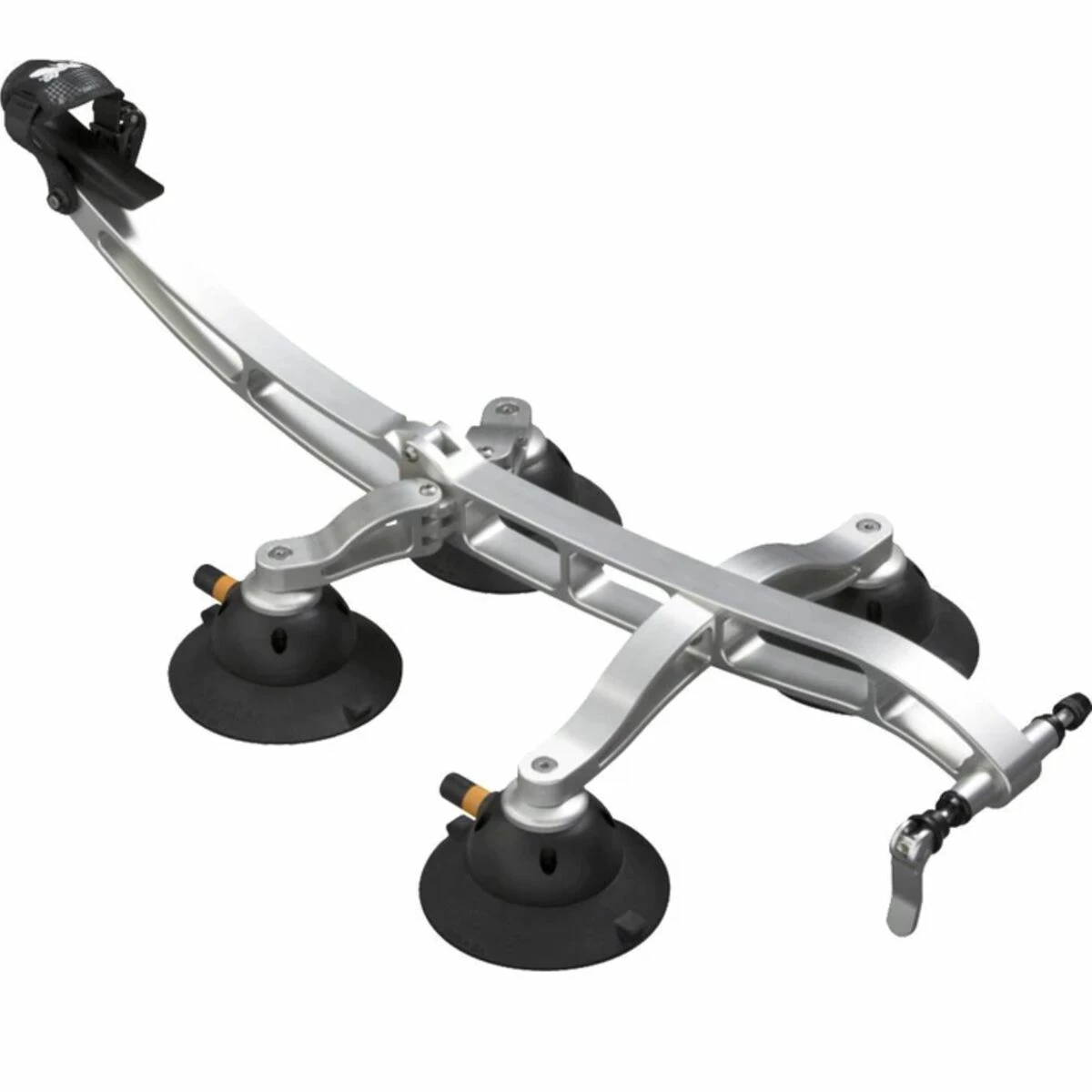 - Fork-mount bike carrier installs with powerful, safe vacuum cups