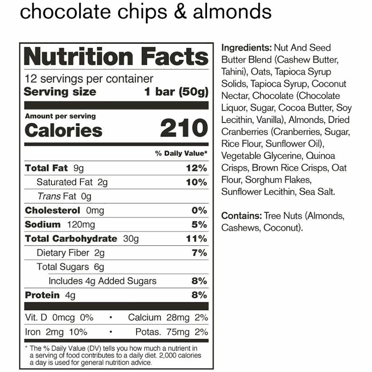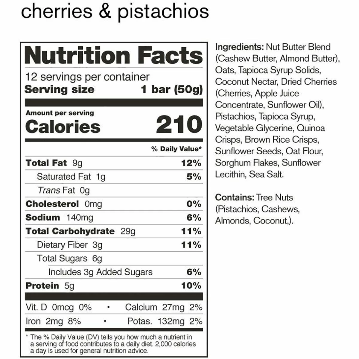 - Calories: [chocolate chips & almonds] 200, [cherries & pistachios] 210, [ginger & miso] 210