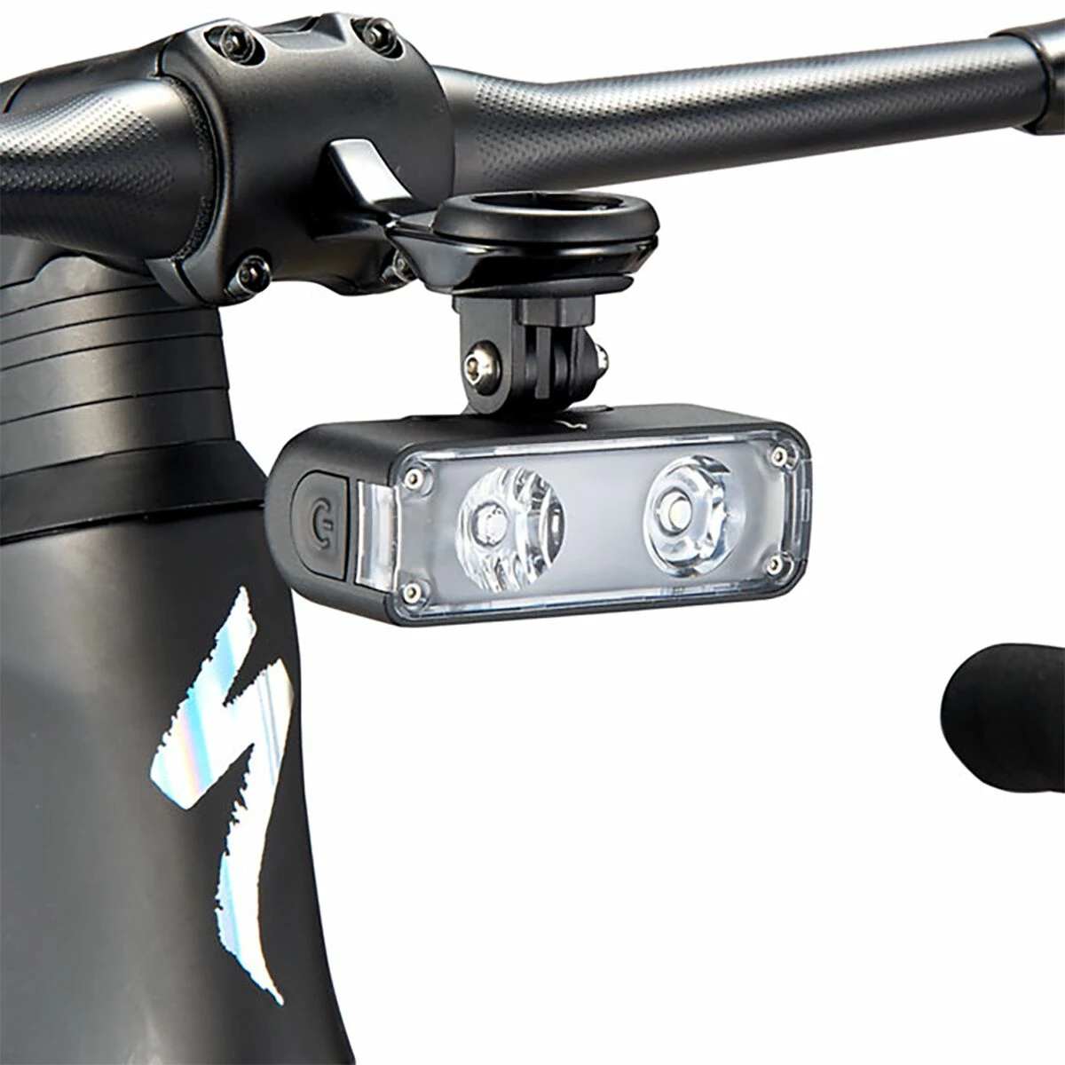 - Bike mount fixes Flux Headlights beneath computer head units