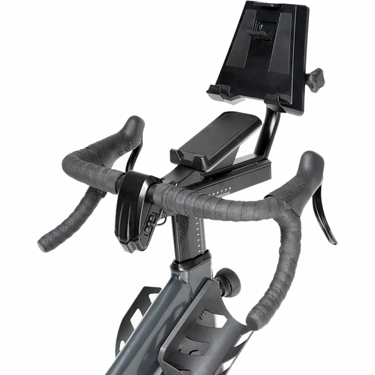 Other notable features include integrated tablet and smartphone holders in a secure and easy-to-read location, along with two fast-charging USB ports to keep your devices charged throughout the workout. Two water bottle mounts make it easy to stay hydrated during longer training sessions, and you can even mount your favorite saddle or handlebar to further customize the bike to your individual preferences (including triathlon and TT bars).