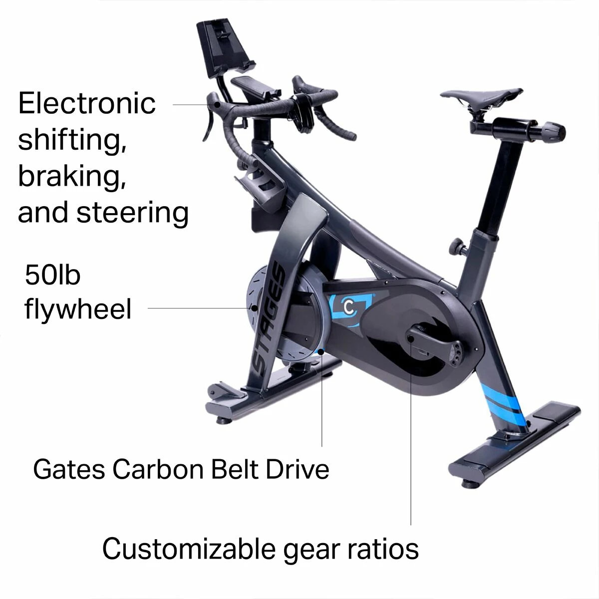 - Resistance: Gates Carbon Belt Drive with 50lb flywheel (up to 3,000w of resistance at 120rpm)