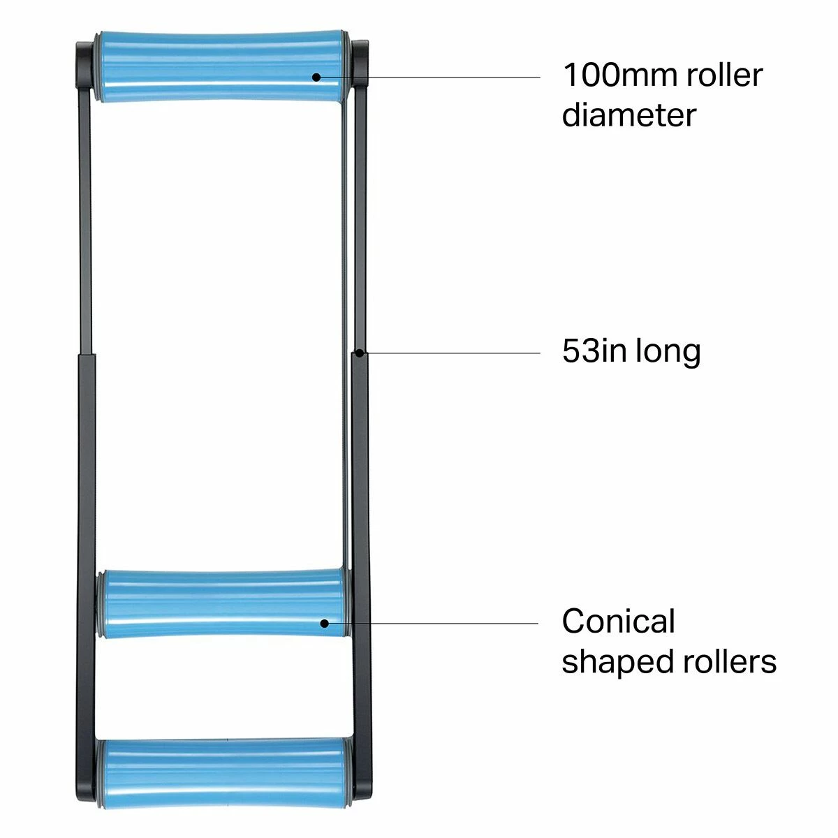 The cycling industry tends to overthink just about everything, but Tacx’s Antares Training Rollers are a refreshing exception to this blight of over-engineering. The Antares are straight-up rollers: easy to retract for storage, easy to transport to races, easy to set up and get spinning on. The only bit of special engineering is the conical shape of the rollers themselves, which helps to coach our tires into the center so we don’t ride off the edge while we’re zoning out to some trainer tunes.