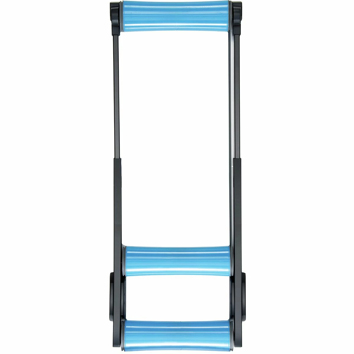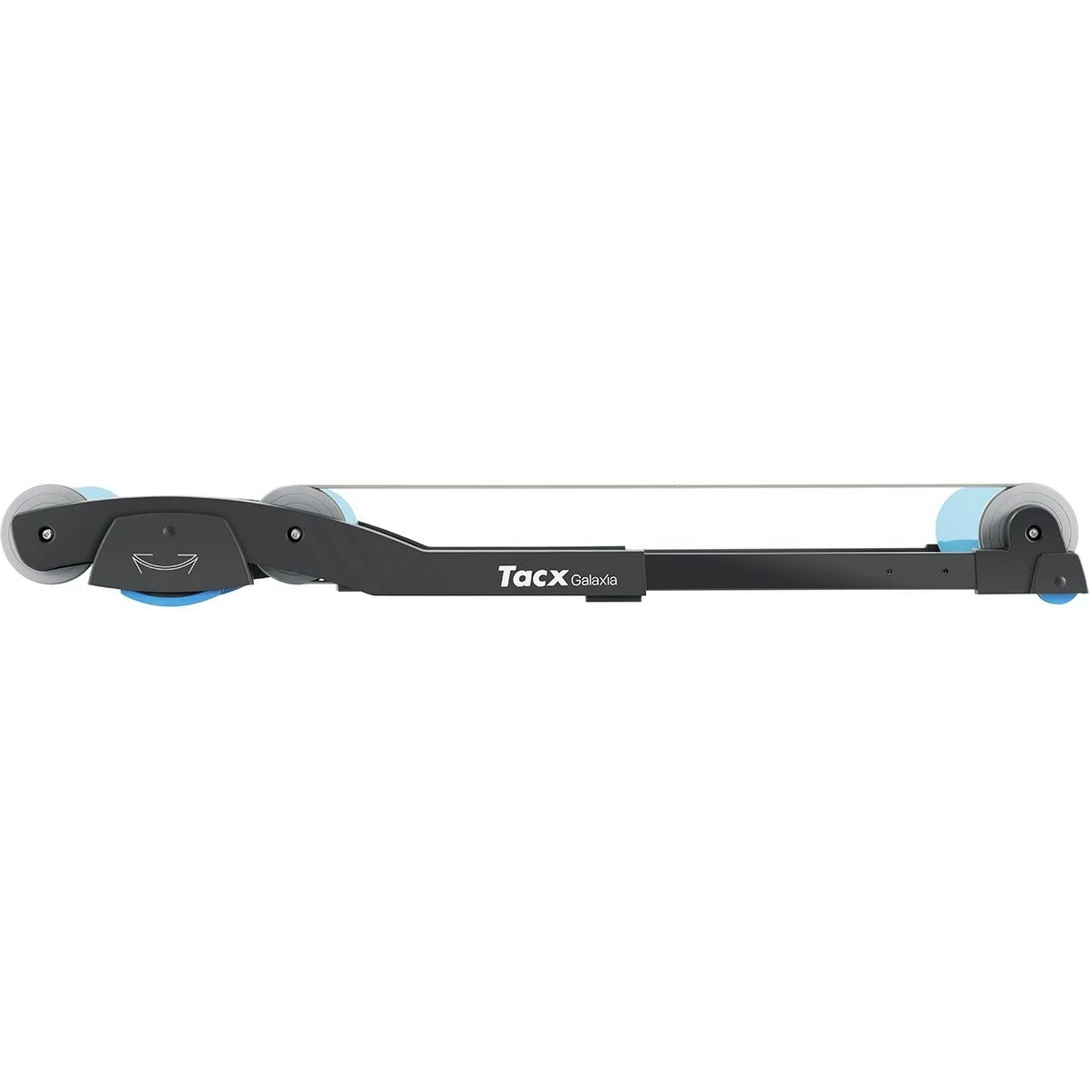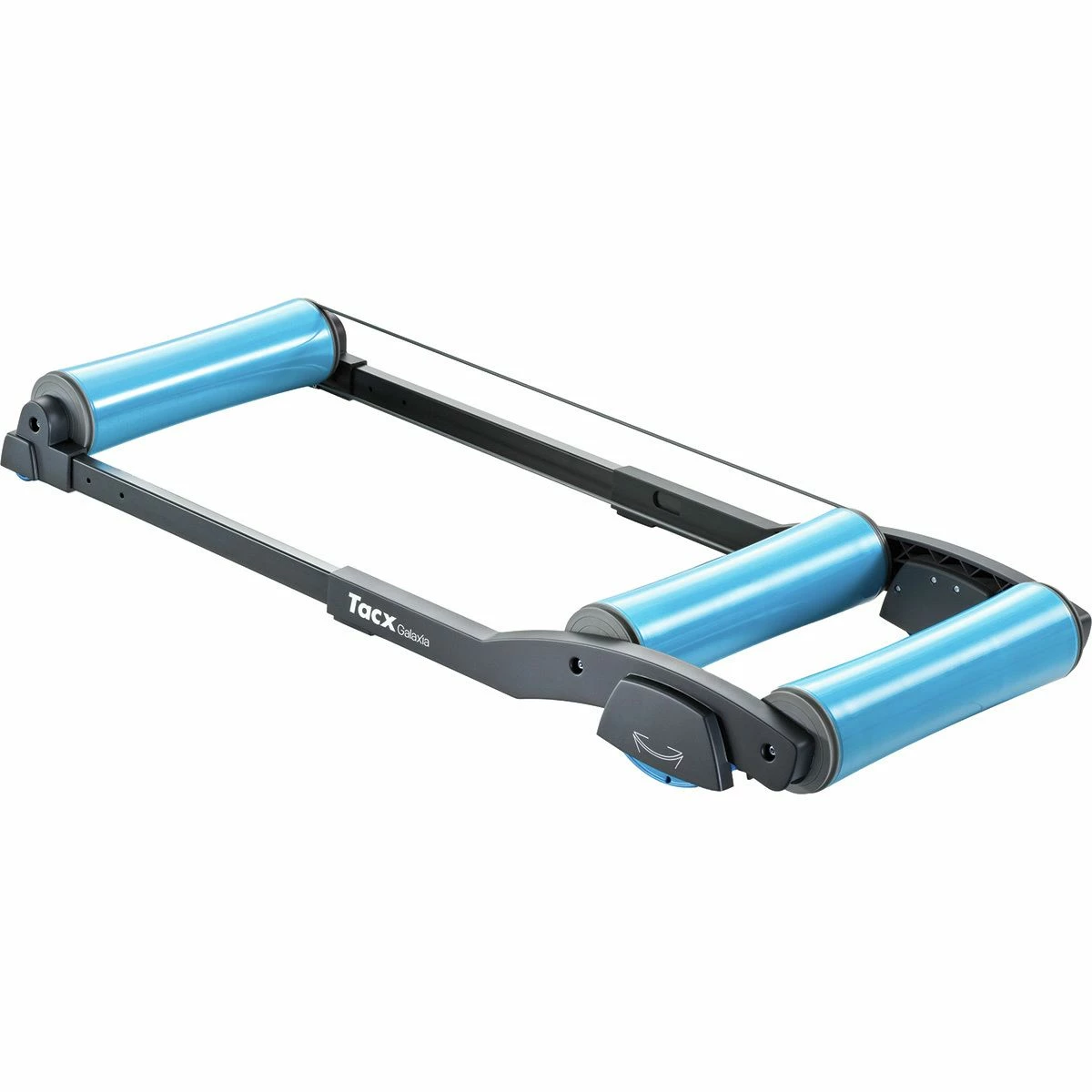 Rollers are rollers. At least, they are until they become catapults and throw you into the wall or the rider warming up in front of you because you punched out of them with an acceleration. Tacx’ Galaxia Training Rollers solve that issue with a swing system that absorbs those accelerations, keeping your tires on the rollers and you on the bike. It also features the same conical rollers as the less expensive Antares model, and that shape further reduces the risk of unplanned rider/basement wall interfaces by coaching your tires into the center and away from the rollers’ edges.
