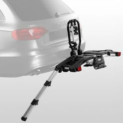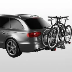 Thule made sure to give a large distance between the wheel holders to accommodate bikes with large wheel bases, as well as a small, foldable platform that you can stand on for improved accessibility. Not to mention that you can still access the trunk when the bikes are mounted thanks to a smart foot pedal tilt that lowers them horizontally out of the way when you need to grab gear. Plus, you can lock your bikes to the bike rack and your bike rack to the receiver with the included Thule locks when you need to get gas or a bite to eat.