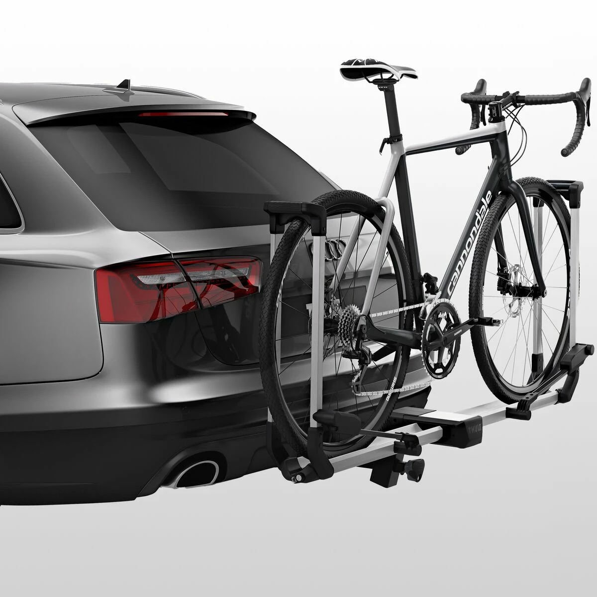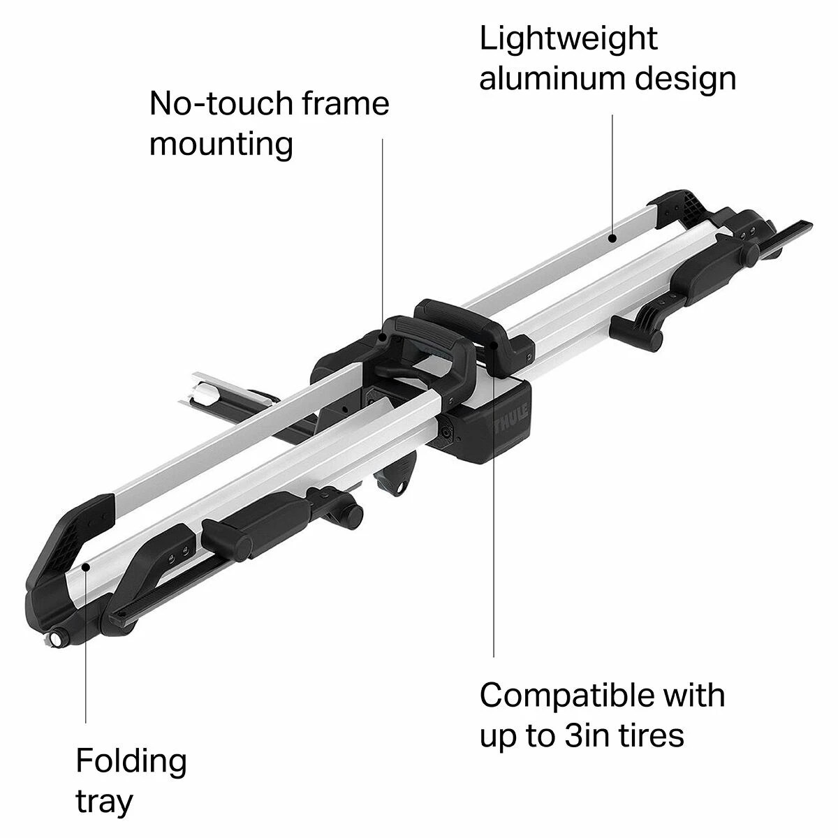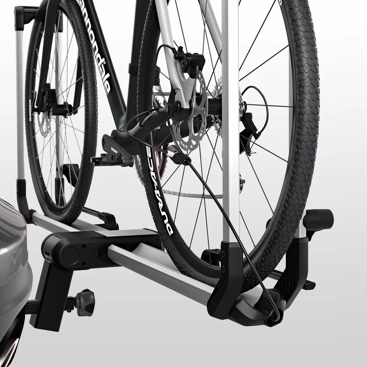 As paint jobs on bikes continue to break barriers in appeal and individual customization, protecting your bike’s image — as well as its carbon — is understandably a top priority. Thule charges into the frameless contact market with their Helium Platform 1, which clamps directly at the tires, thus avoiding any contact with your frame. Loading the bikes is a time-saving wonder as you’ll unfold the wheel loops, set the bikes in the trays, and ratchet down the loops to secure the wheels in place. Stashing last-minute cargo in the hatch is now less complicated, as the Helium tilts via the HitchSwitch to clear the vehicle’s hatch even when the bikes are loaded. And finally, lock the bikes for added security during transport en route to the trailhead with the integrated cable lock (included).