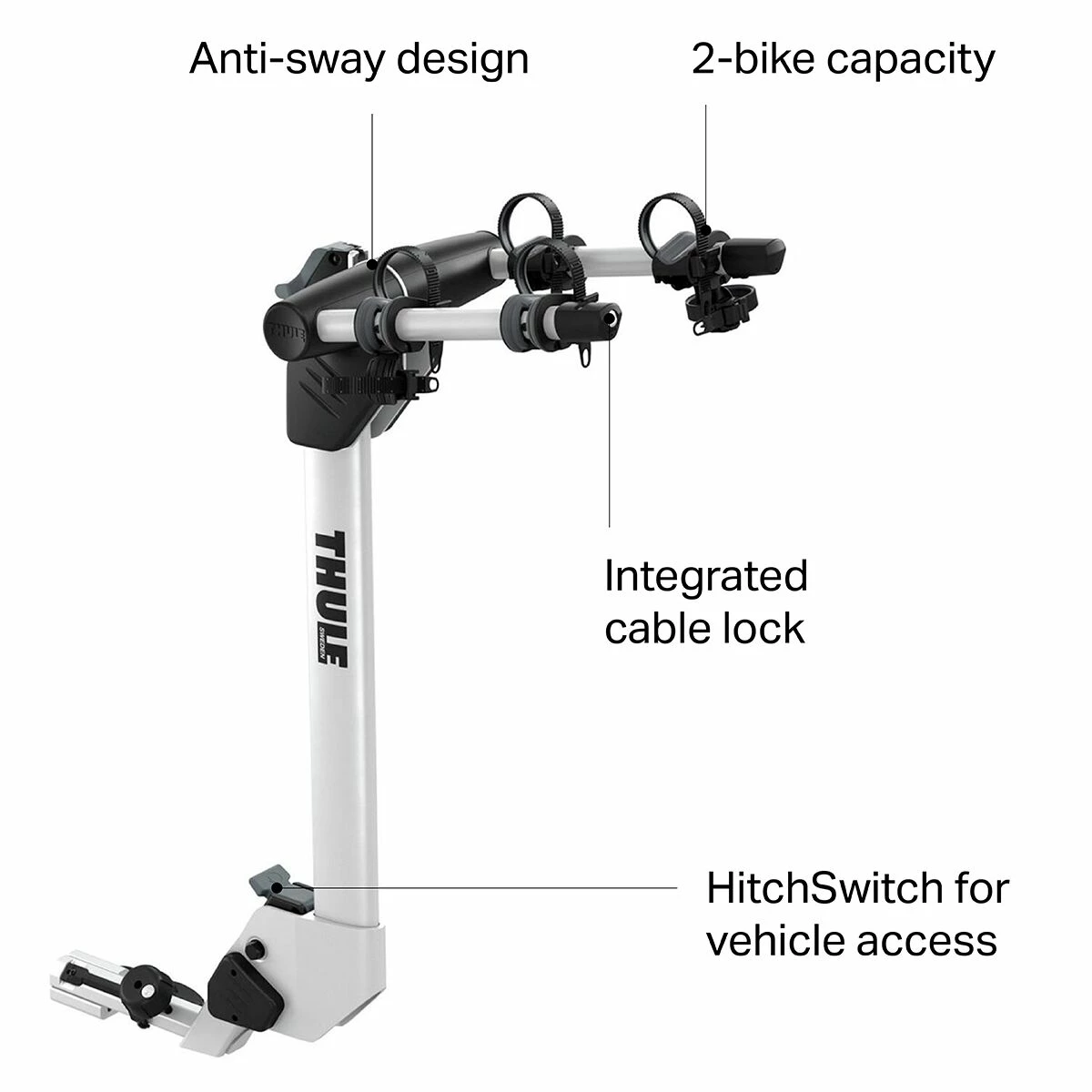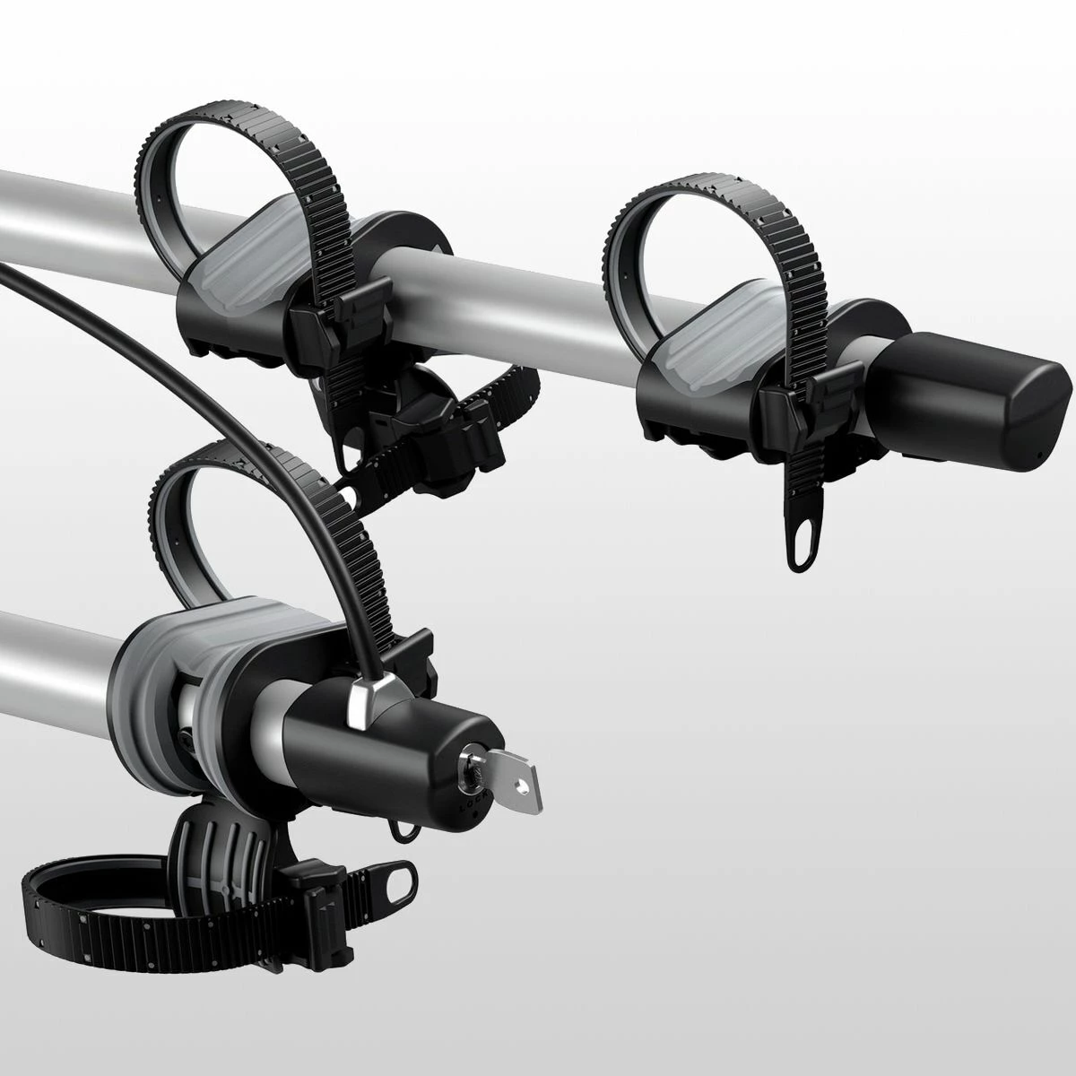 Easy, convenient, no-tool installation saves you tons of frustration, and once it’s on, fiddling between rides is kept to a minimum thanks to the aforementioned Hitch Switch system, which folds down and tilts away from your car for1 easy rear access. The industry-leading seven-inch spacing between bikes ensure protection on the road, while confident stability and fit comes with the integrated anti-sway design that prevent bike-to-bike contact and even folds away when not needed. Narrow cradle arms accommodate a wide range of bikes from your child’s beginner bike to your off-road rig, which are safe during pit stops thanks to the integrated, retractable cable that easily locks the bikes down to prevent theft.