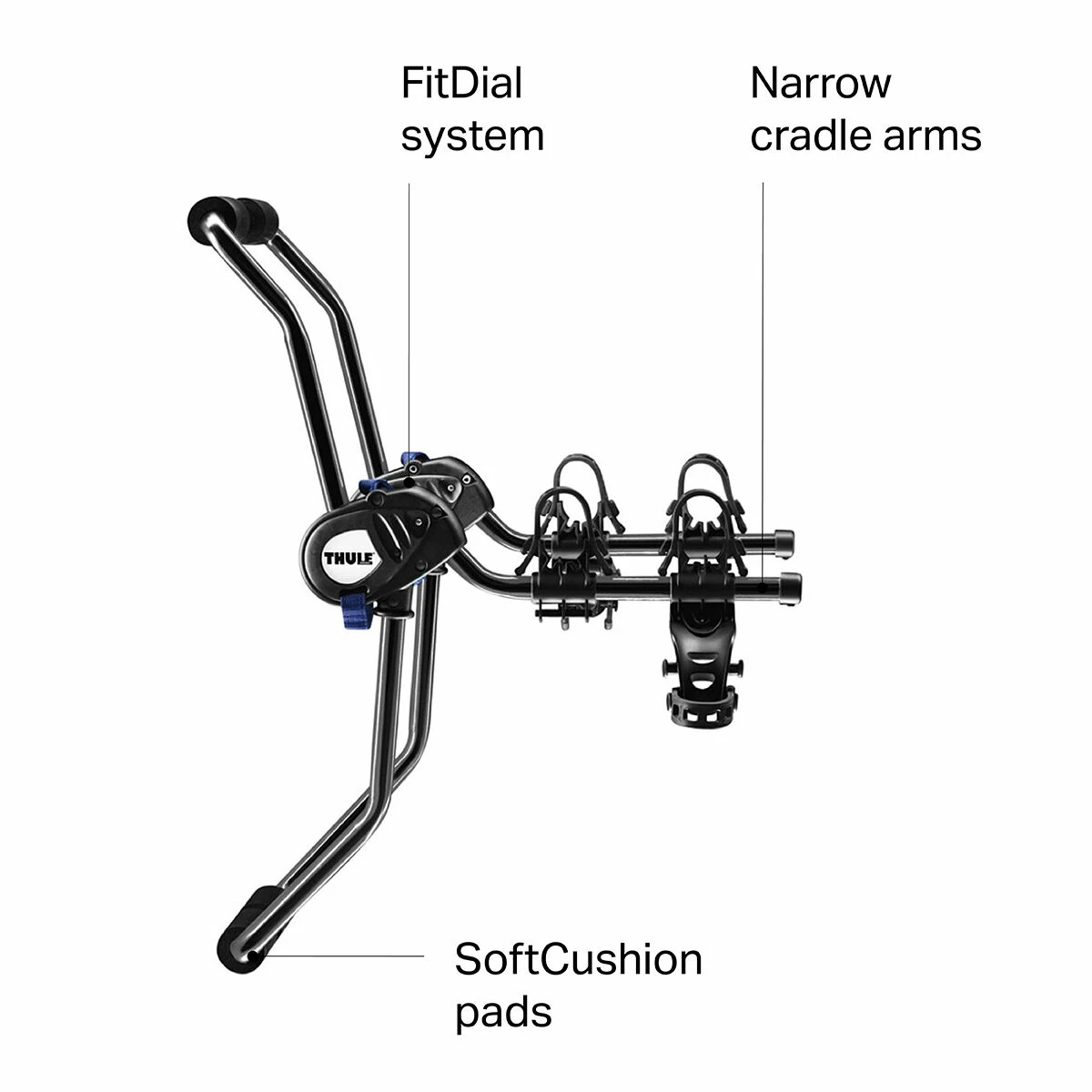 - Narrow cradle arms fit a wide range of bikes