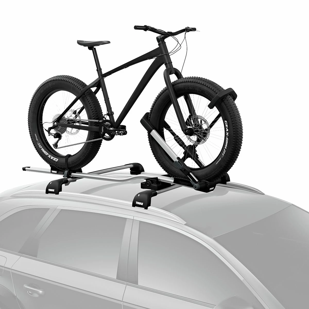 Designed to secure down fat and plus-sized tires in the range of 3 to 5 inches wide, the Thule UpRide Fatbike Adapter replaces the skinnier wheel holders that come stock on your UpRide Bike Carrier. They secure directly in place where the previous wheel holders resided, offering a wider, more stable platform for the voluminous rubber found on fat and plus-sized bikes. Includes a pair of UpRide Fatbike Adapter wheel holders for both ends of your bike.