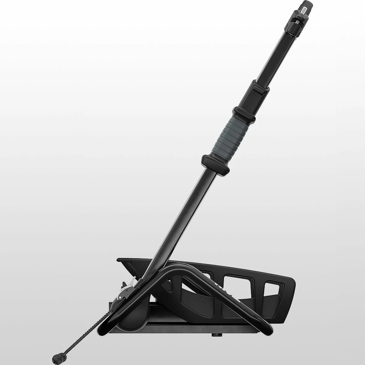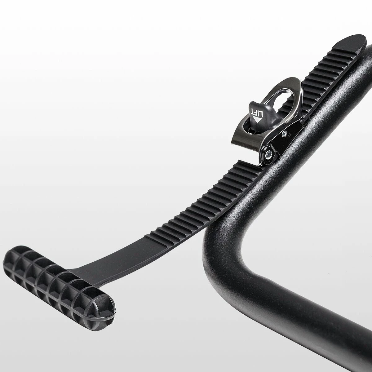 - Ratcheting arm secures at wheel to limit risk of frame damage