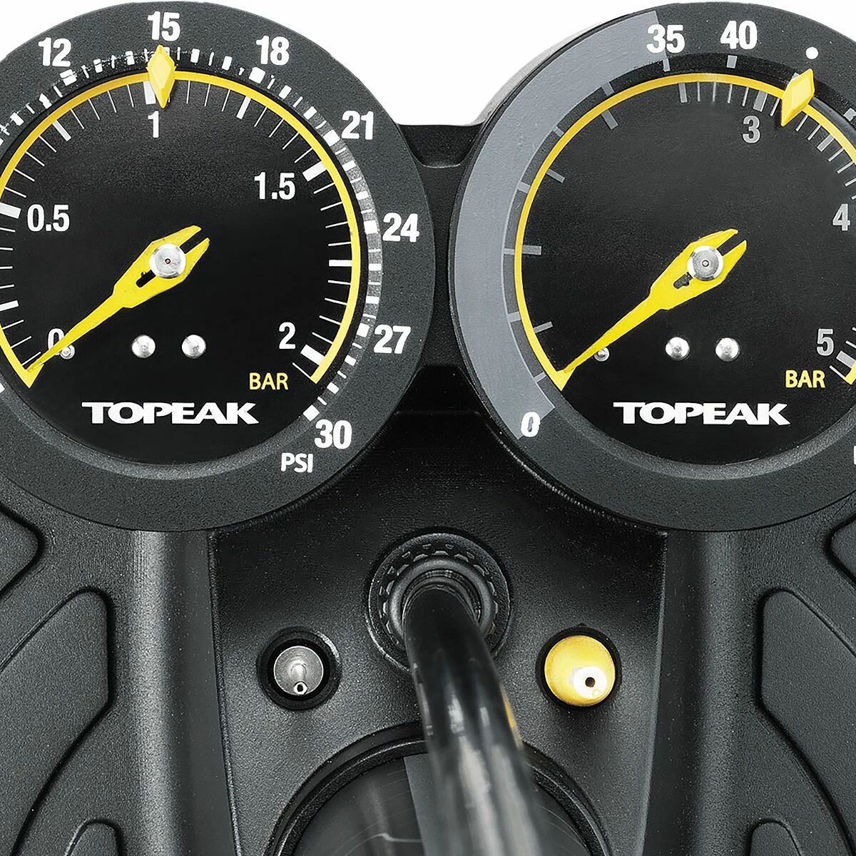- Low-pressure gauge stops at 30PSI for dialing fat tires