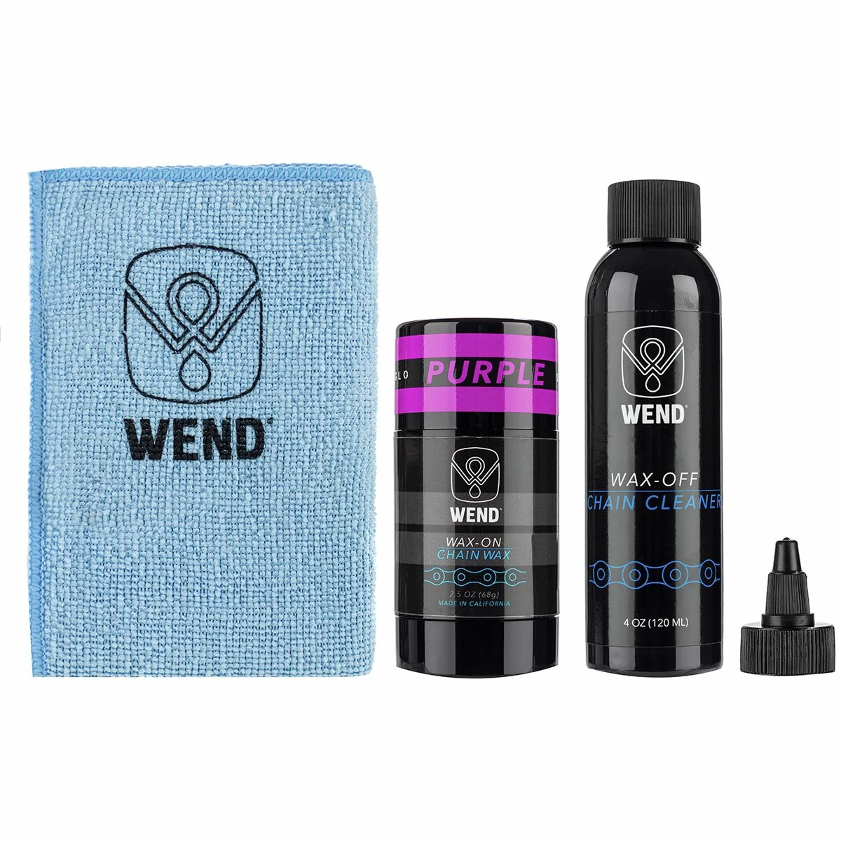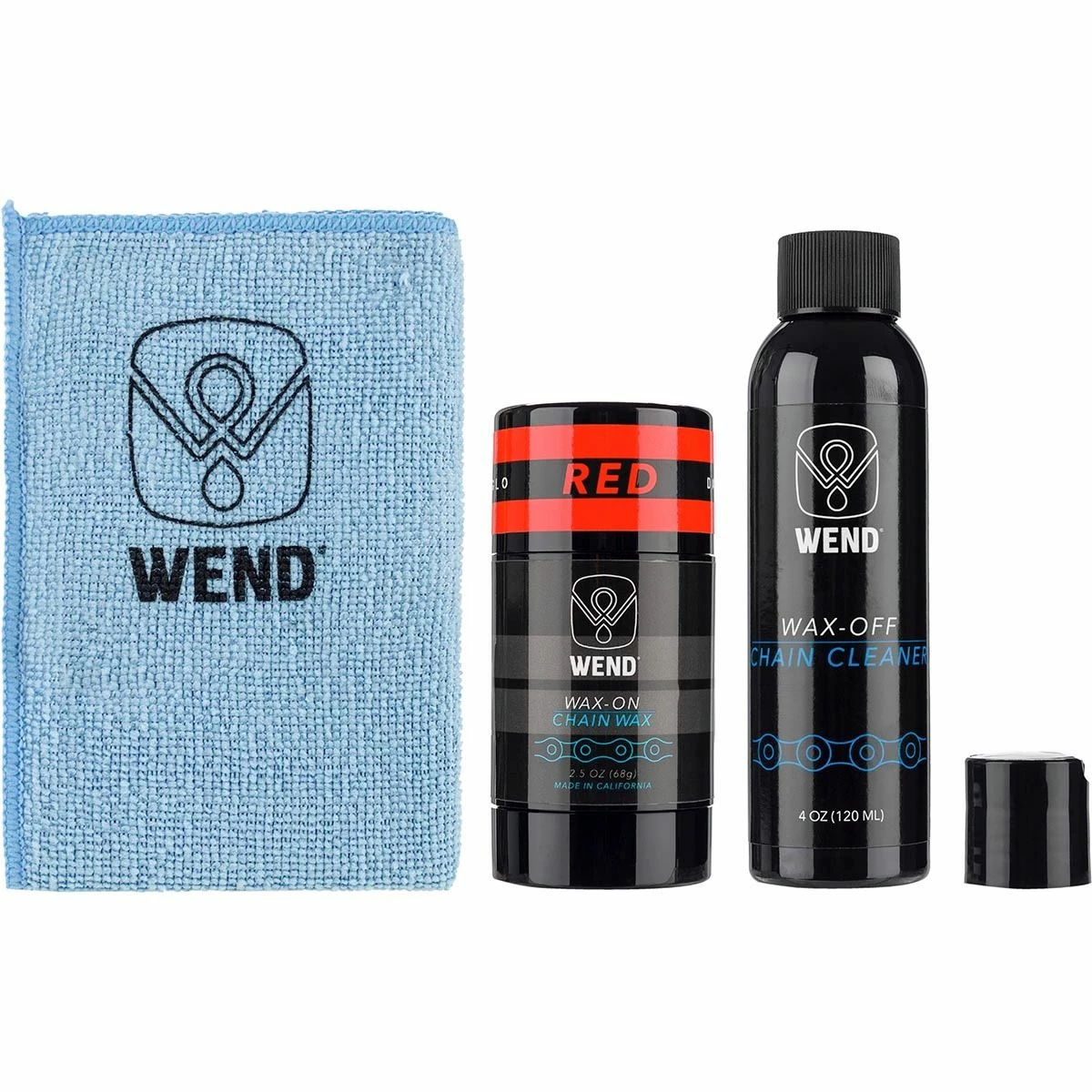 - Includes: wax-off chain cleaner, wax-on colored chain lube, microfiber cleaning cloth