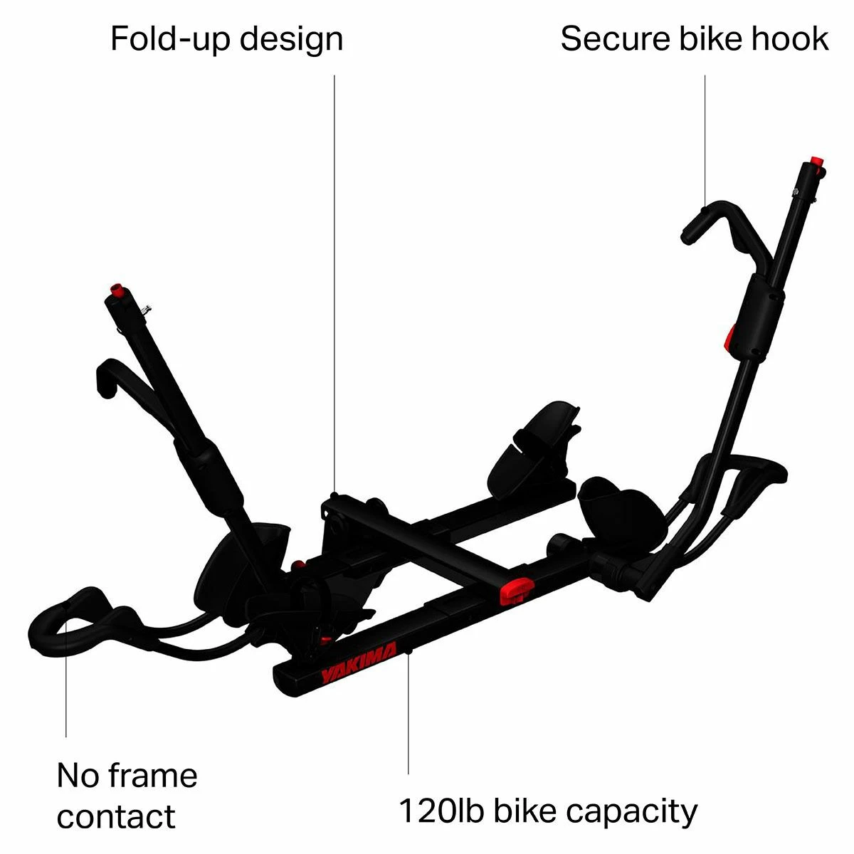 - Holds two bikes, up to 120-pounds total