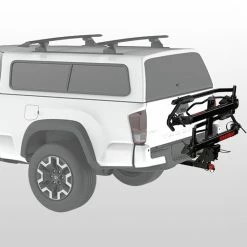 Yakima’s StrongArm hook secures firmly in place over your wheel and tire, so you won’t have to worry about precious carbon frames coming into contact with the rack itself. Ratcheting straps loop around your rear wheels to keep the bike strapped down securely on the highway. The rack tilts out of the way with its KickStart foot pedal, so you can access the rear hatch of your vehicle when both bikes are loaded and ready to go. Also, it folds up against the rear of your vehicle when you’re just driving around town without your bikes in tow.