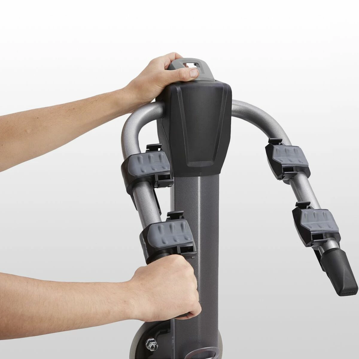 Convert your rear-mounted spare into a sleek and reliable two-bike carrier with Yakimaโs SpareRide Hitch Rack. The SpareRide Hitch Rack mounts securely to spares between P195 and P318 and can hold up to 70lb in total weight. Yakimaโs ZipStrips make loading and unloading a quick and easy process, and the anti-sway cradles keep your bikes securely in place when youโre on the road. The rack also features SKS bike locks and a locking knob interface for added protection against theft. When the rack is not in use, the carrying arms fold down out of the way.