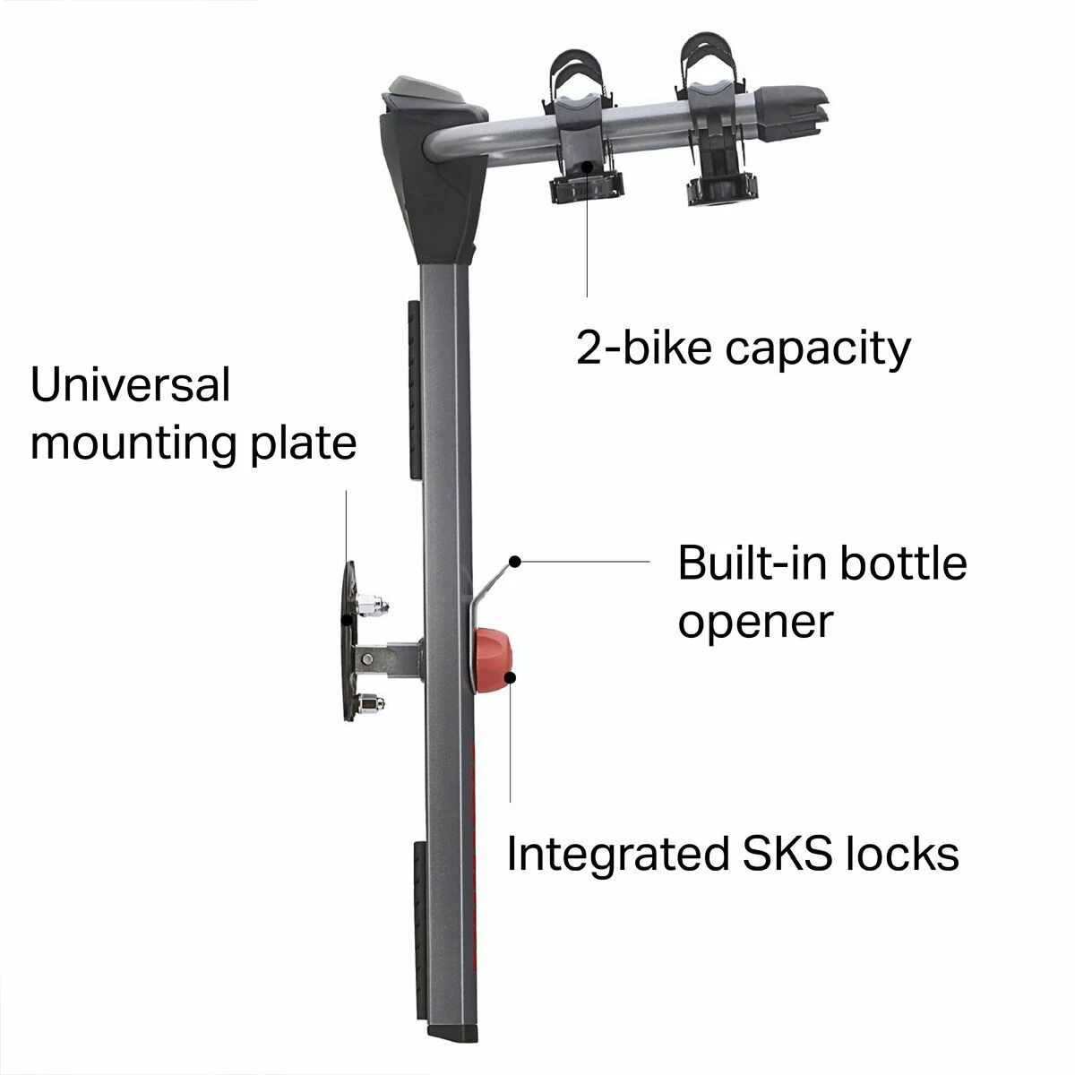 - Locks Included: yes, SKS locks secure bikes to rack, yes, locking knob secures rack to spare tire