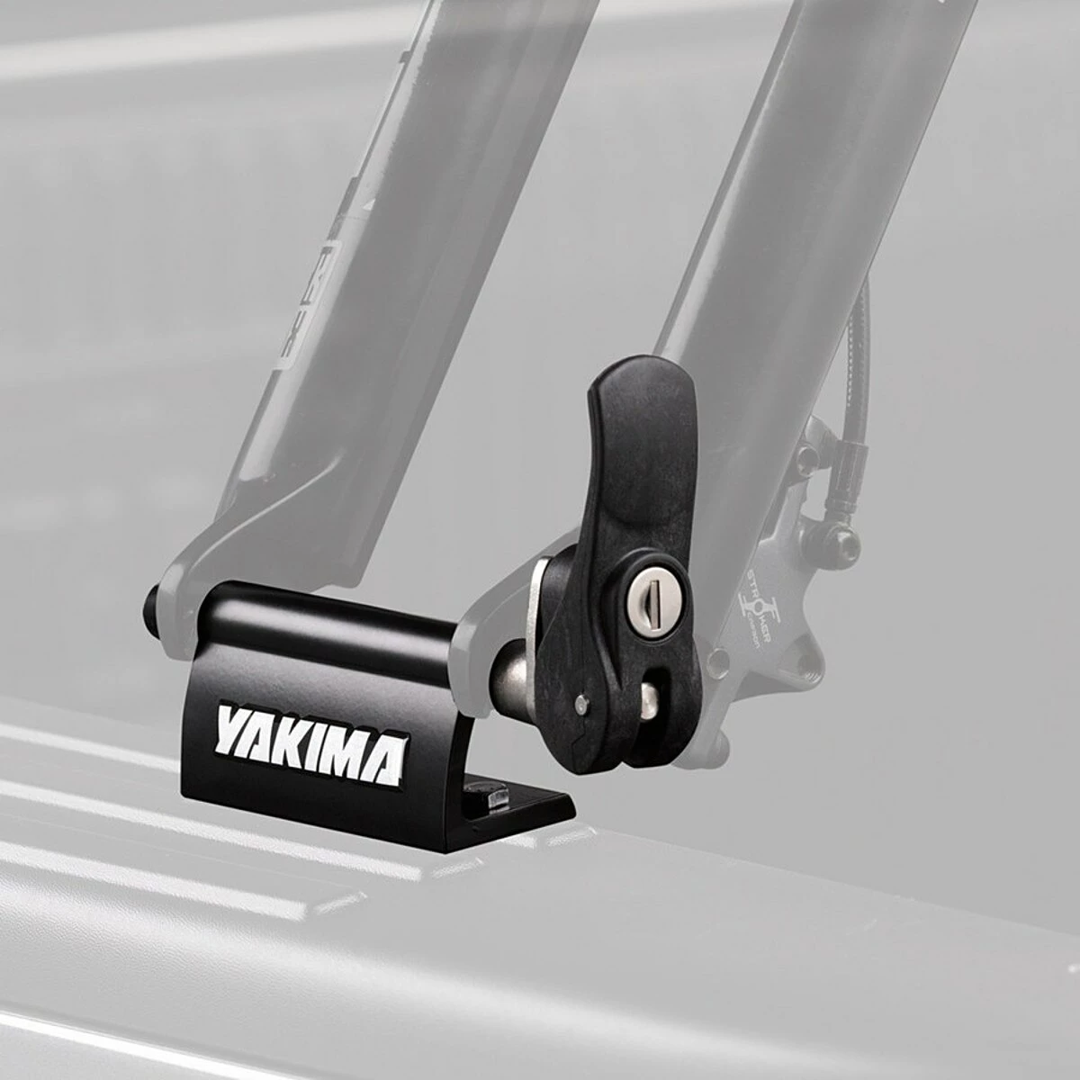 The Yakima Locking Blockhead is bomber security. The Locking Blockhead holds one bike, and mounts on pickups, RVs, and boats (mounting hardware not included). It locks your bike to the mount with SKS cores and keys, which are included. The durable and corrosion resistant Locking Blockhead also comes complete with a beefy 9mm skewer. Padding protects your truck’s finish. Non-locking Blockhead also available.